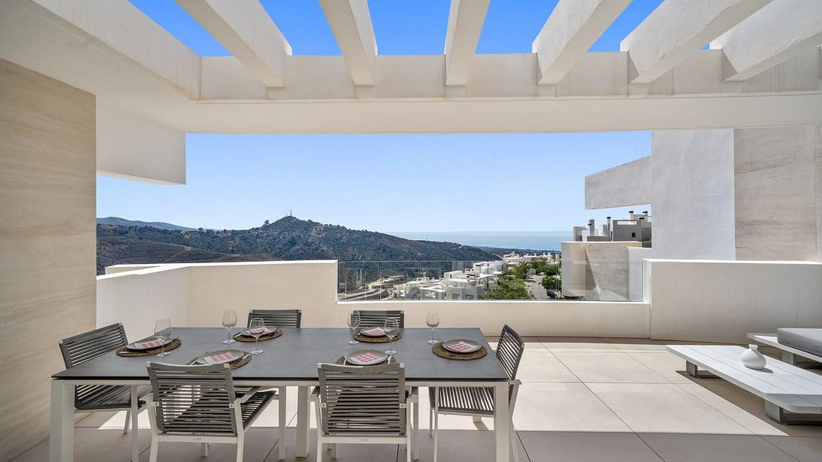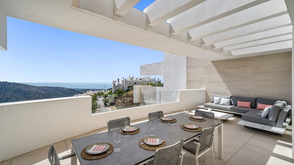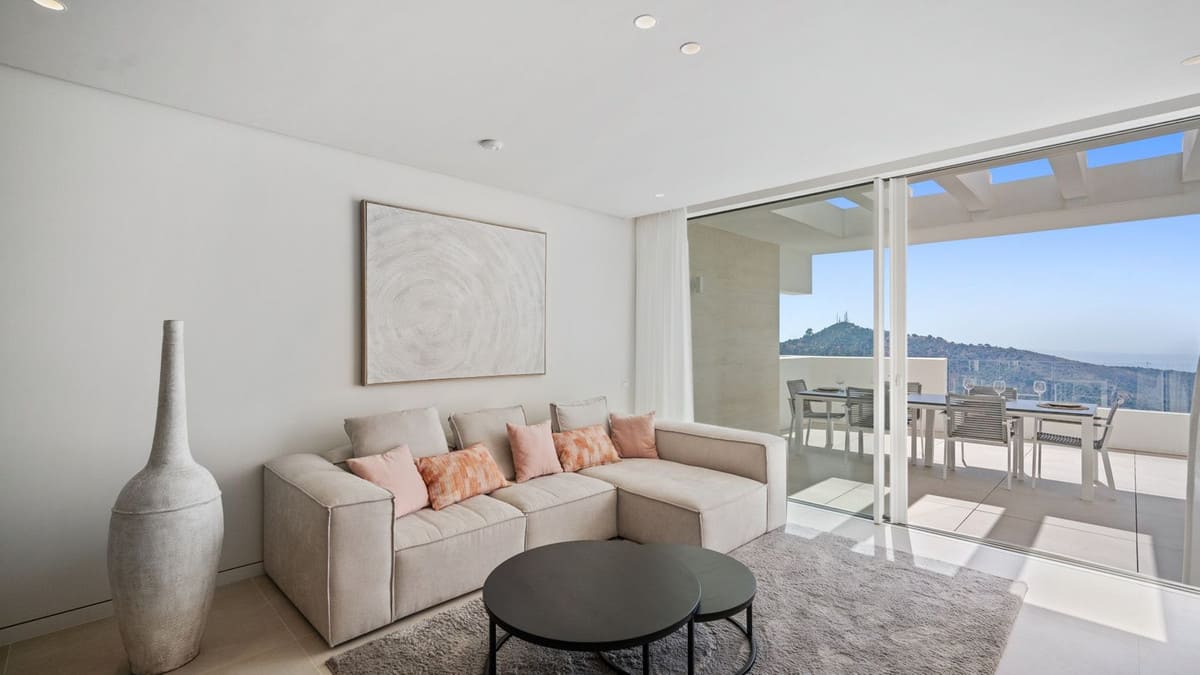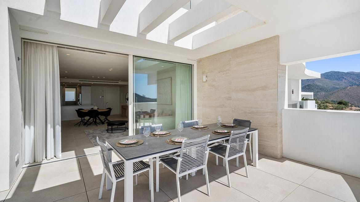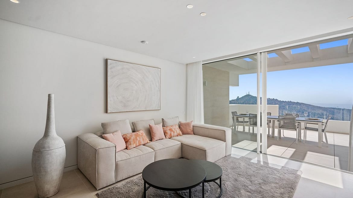 Impressive contemporary flat, with sensational sea and mountain views. Las Jacarandas has two private outdoor swimming pools with children's play areas and gardens. Residents also have full access to all the amenities of Palo Alto including, concierge services, a world-class health club, horse riding, spa and beauty facilities, paddle tennis courts, gym, tennis courts, a social club, a kids club, and endless space to enjoy the natural beauty of Sierra de las Nieves.