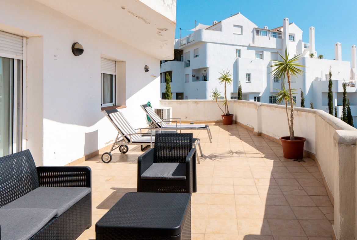 While the property boasts a prime location, mere minutes from the vibrant Puerto Banus, it also offers a unique proposition with a 45m2 private terrace. This blank canvas is your outdoor sanctuary, overlooking the inviting communal swimming pool. Envision al fresco dining, lounging in the sun, or creating a tranquil retreat—your imagination is the only limit.