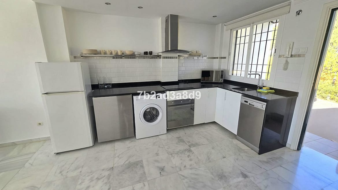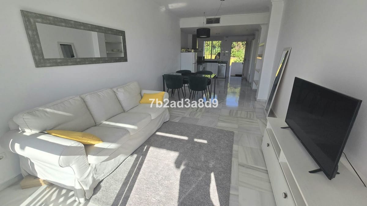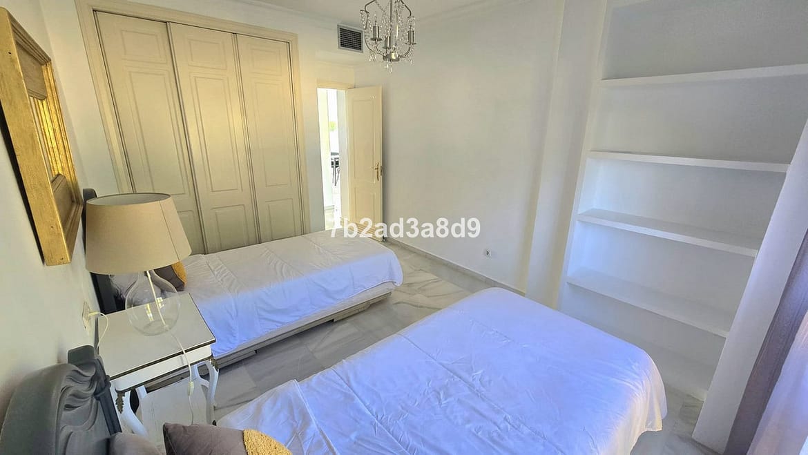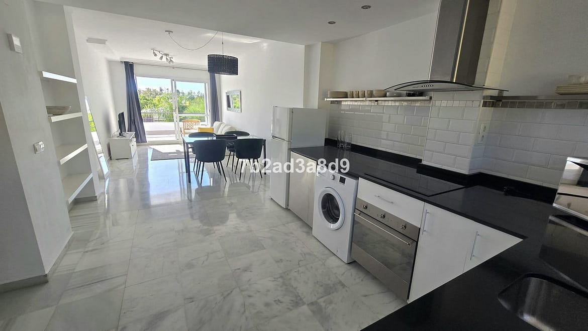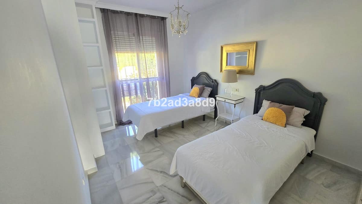 Bright and spacious penthouse in Nueva Andalucía, recently renovated and fully furnished. Ideally located close to golf courses and a school, within a secure gated community featuring three swimming pools and beautifully maintained gardens. The property is on the first floor of a low-rise block with only two levels—ground floor apartments and penthouses—without an elevator. It offers 2 bedrooms and 2 bathrooms, an open-plan kitchen with dining and living area, and direct access to a sunny terrace with stunning views of the pool and mountain.