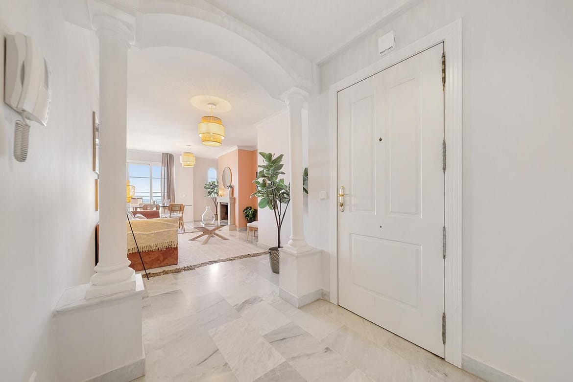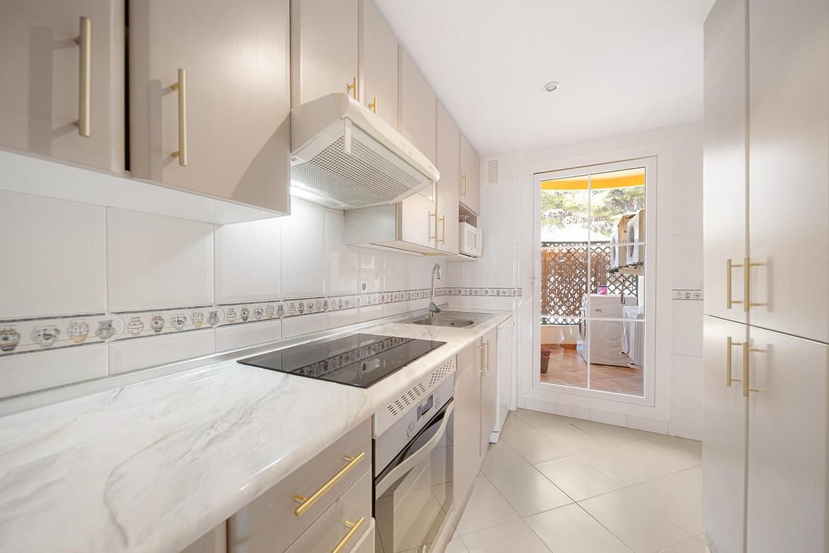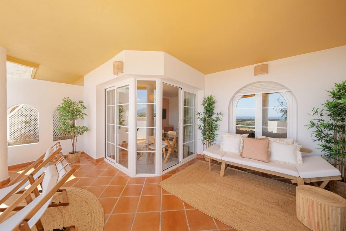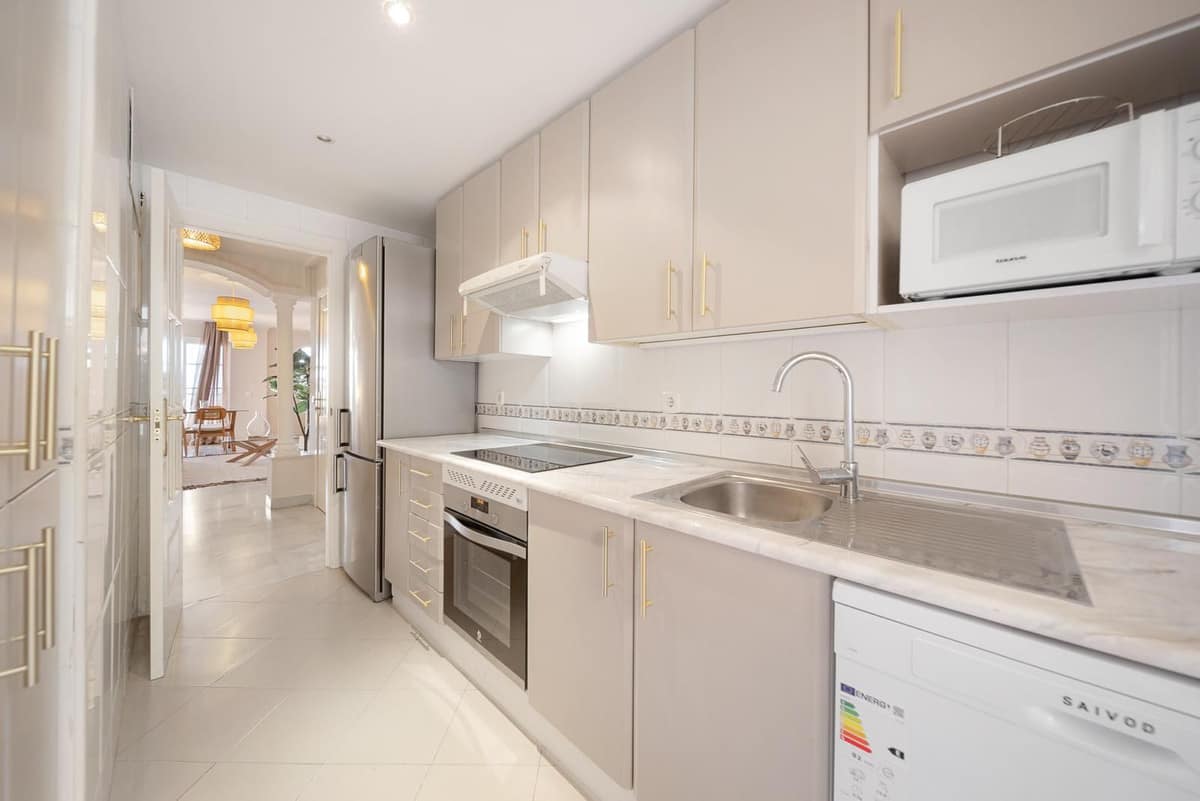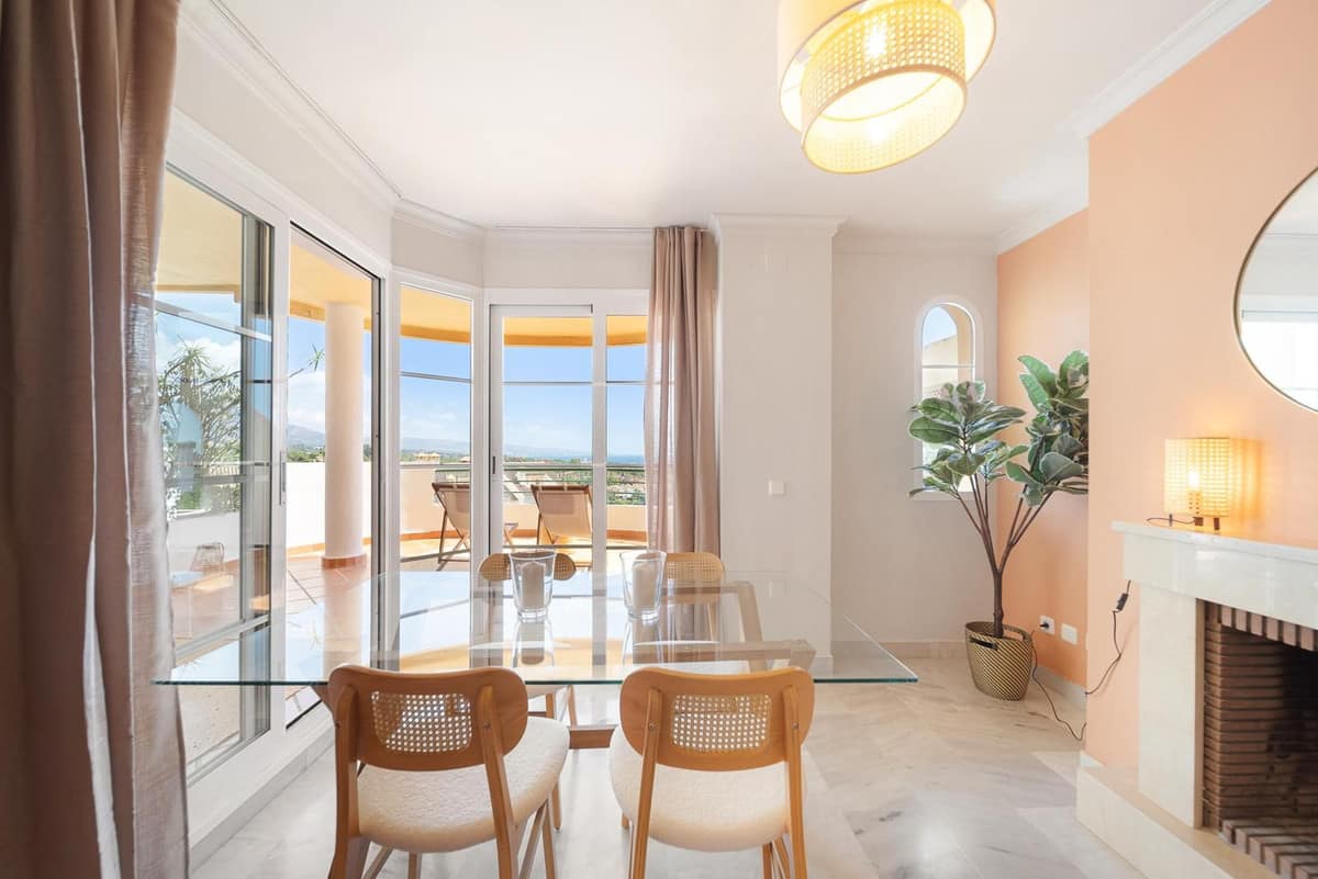 This beautifully designed 2-bedroom, 2-bathroom apartment in Nueva Andalucía, Marbella, is available for rent, offering the perfect combination of comfort, luxury, and convenience. With 92 m² of built space and a 20 m² terrace, it boasts breathtaking panoramic views of the mountains and lush surroundings. The open-plan living and dining area is spacious and bright, seamlessly extending to the terrace for a perfect indoor-outdoor living experience. The fully equipped modern kitchen includes high-quality appliances and ample storage, complemented by a separate utility area. The master bedroom features an en-suite bathroom, while the second bedroom is spacious with access to the second bathroom.