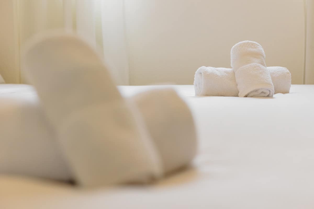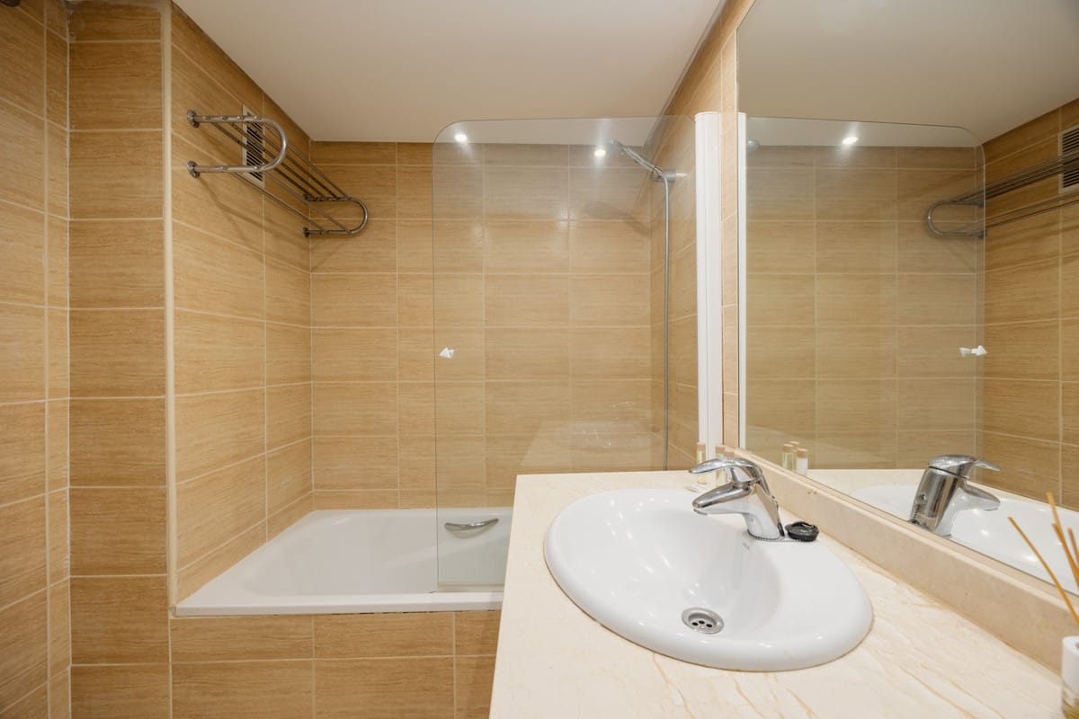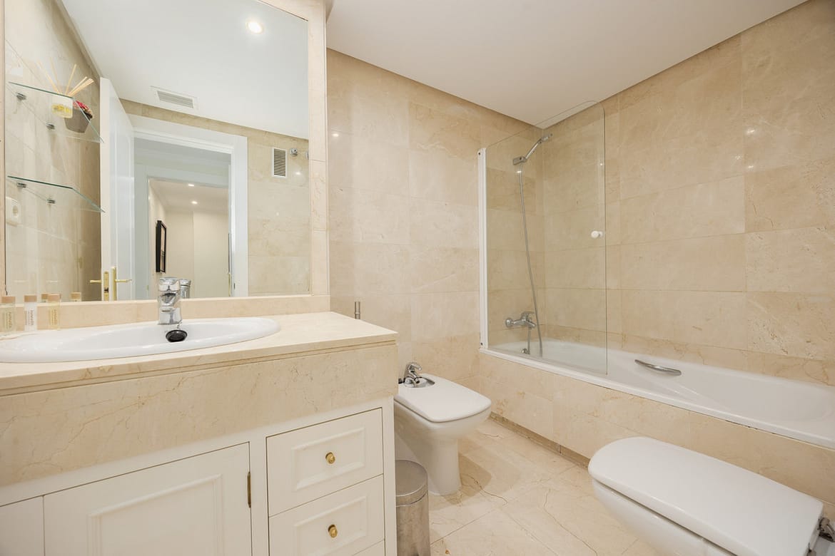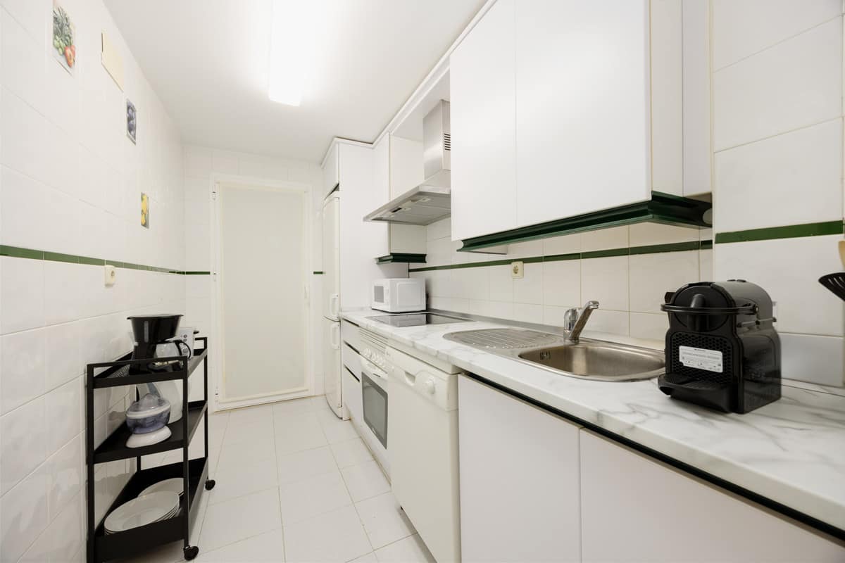 The master bedroom, en suite, has a double bed and a full mirrored closet, while the secondary bedroom has two comfortable single beds of 90, and another closet, this also full-length, it is also next to the other bathroom of the property. Both bathrooms, the en-suite and the one outside, have a bathtub with built-in shower, and the en-suite bathroom is lacquered in marble. Both bedrooms have our own bed linen and towels.