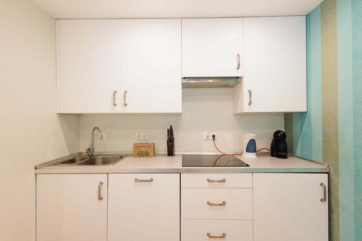 The kitchen, fully equipped with modern appliances such as a microwave, oven, coffee maker, and toaster, ensures maximum convenience during your stay.