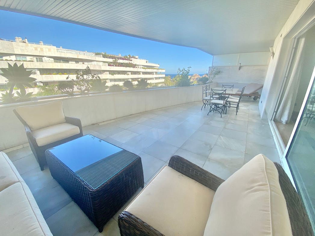 Fantastic 2 bedroom apartment in gated community. A few meters. from the beach, Puerto Banus for its exclusive shops, malls and restaurants. This luxury apartment has a large living room with a beautiful terrace of approx. 50 mtrs. where you can enjoy sea views, pool and the manicured areas. Features: Air conditioning, garage, swimming pool, heated pool, sauna, gym, 24 hour security.