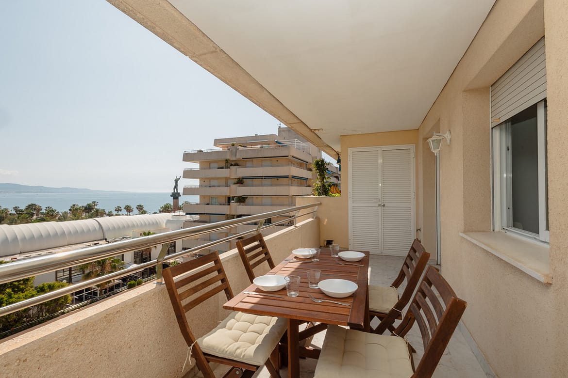 A 107m² apartment located on the front line of the Marina, surrounded by high-end boutiques such as Dior, Hermès, and Rolex. Ideal for 4 people, this property offers 2 bedrooms, 2 bathrooms, a fully equipped kitchen, a living-dining room, and a spacious terrace with sea and mountain views. Its privileged location combines luxury, comfort, and entertainment for an unforgettable vacation.