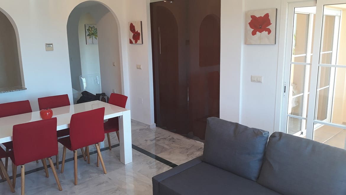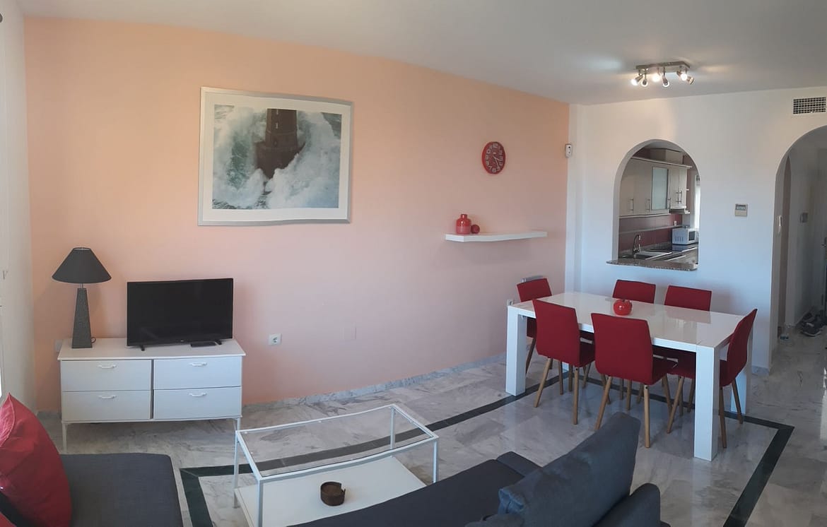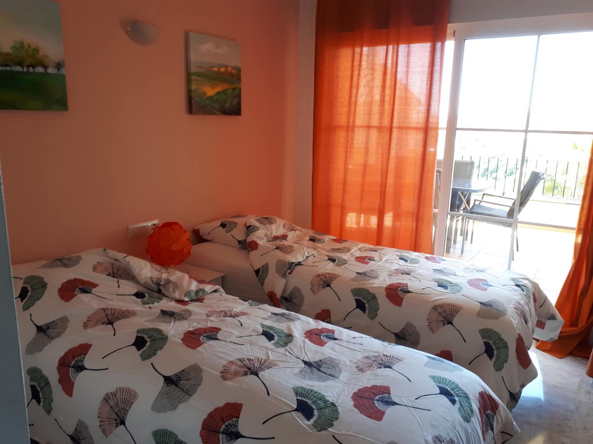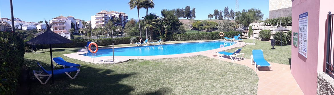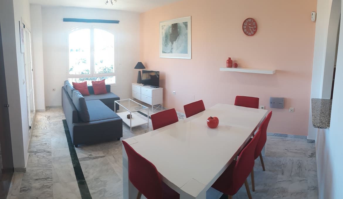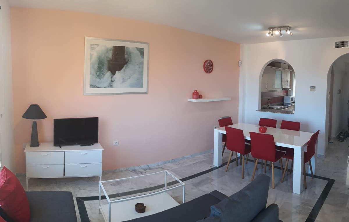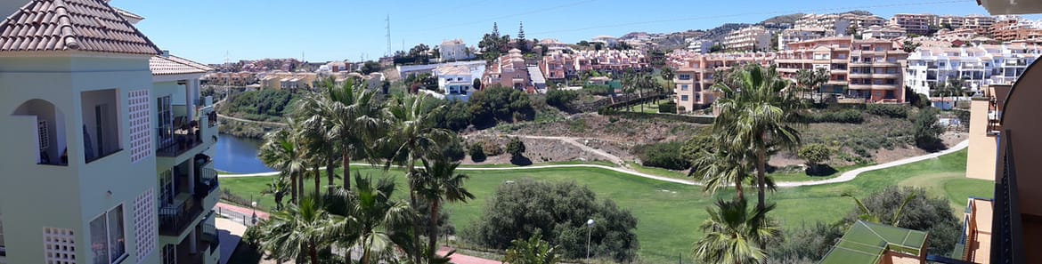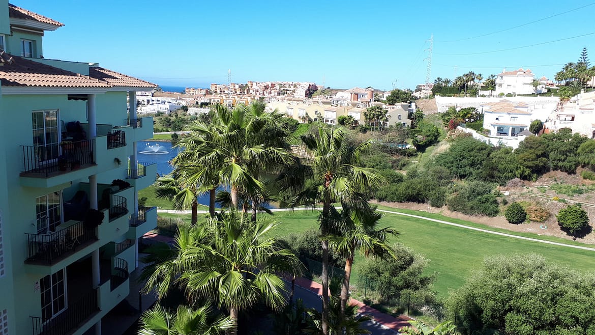 Great apartment in a quiet residential area in the Riviera del Sol urbanization, with wonderful views of the lake and the Miraflores golf course on Zafiro street. It consists of 2 bedrooms, 2 bathrooms (main en suite), living / dining room, fitted kitchen and equipped, marble floors, air conditioning, large terrace, garage, WIFI. Community gardens and pool.