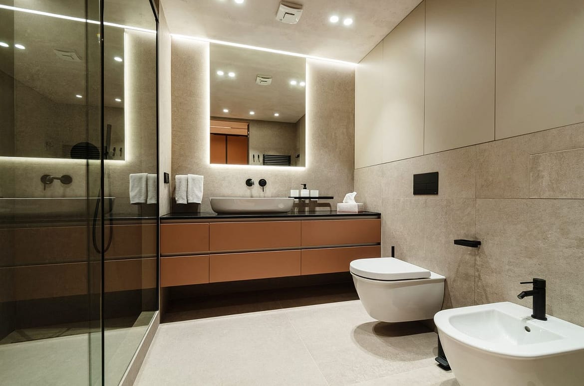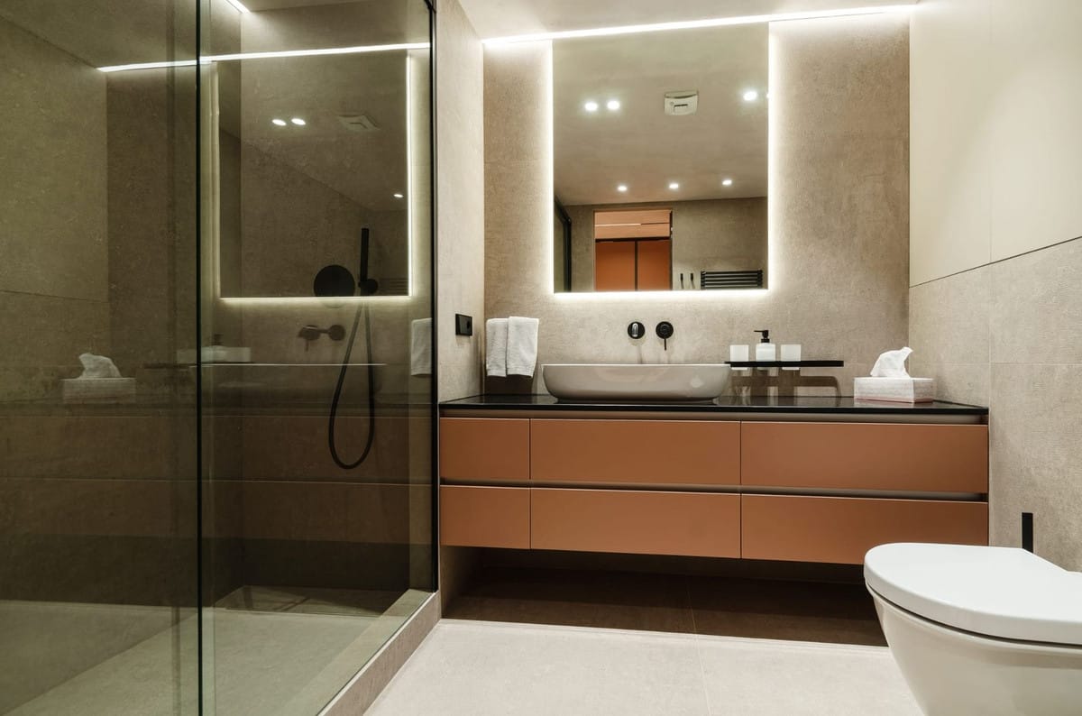 Both bedrooms are thoughtfully designed for relaxation, offering comfortable beds, built-in wardrobes, and a calm, inviting ambiance. The bathrooms are modern and stylish, featuring walk-in showers and premium finishes.