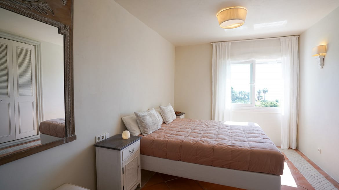 The apartment comprises two spacious bedrooms and two bathrooms, thoughtfully designed to provide both privacy and convenience. The interiors are bright and airy, maximising the 70m² built space to create a harmonious flow between living areas. Large windows frame the stunning vistas, allowing natural light to fill the rooms and enhancing the sense of openness throughout the property.