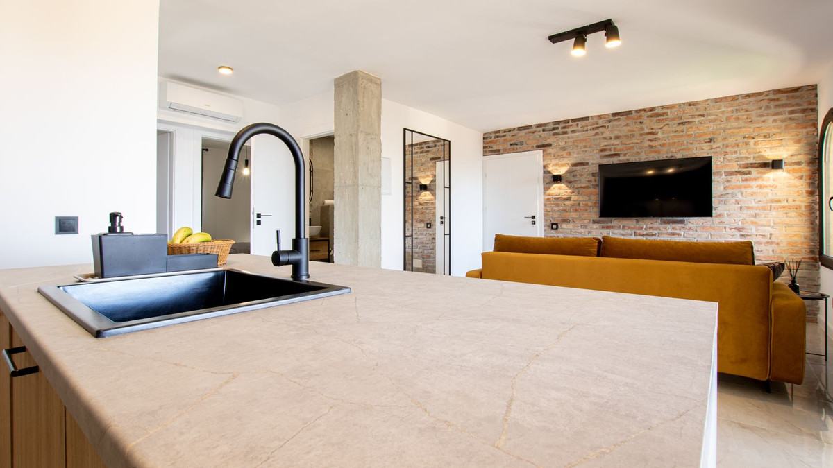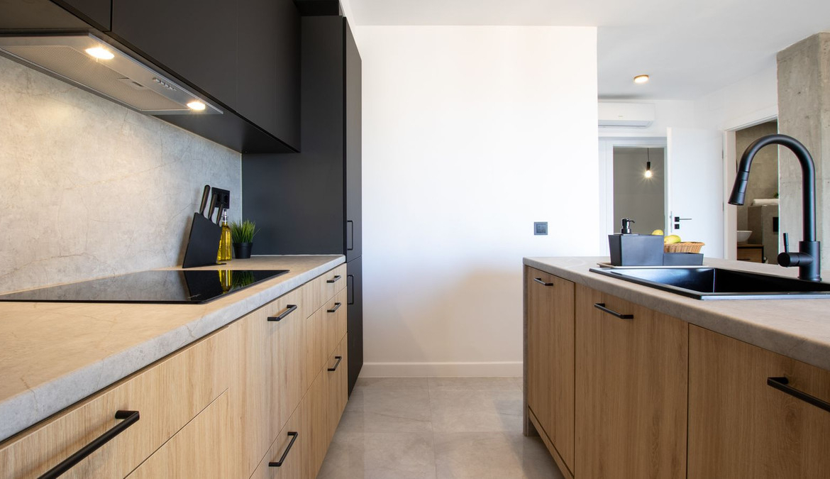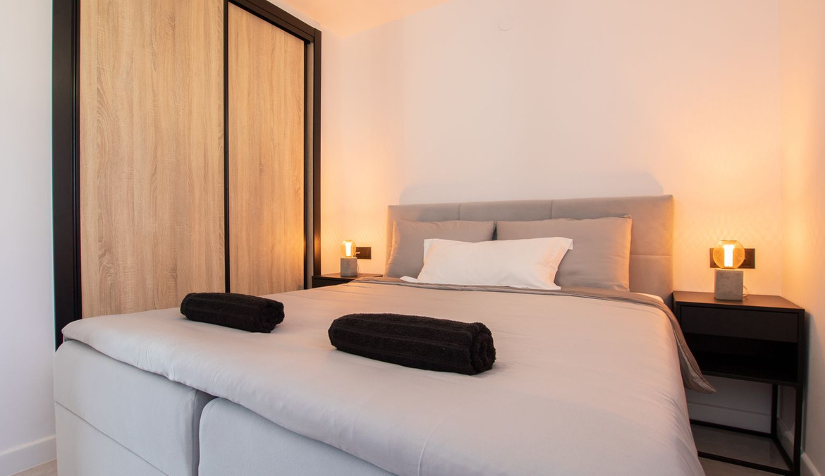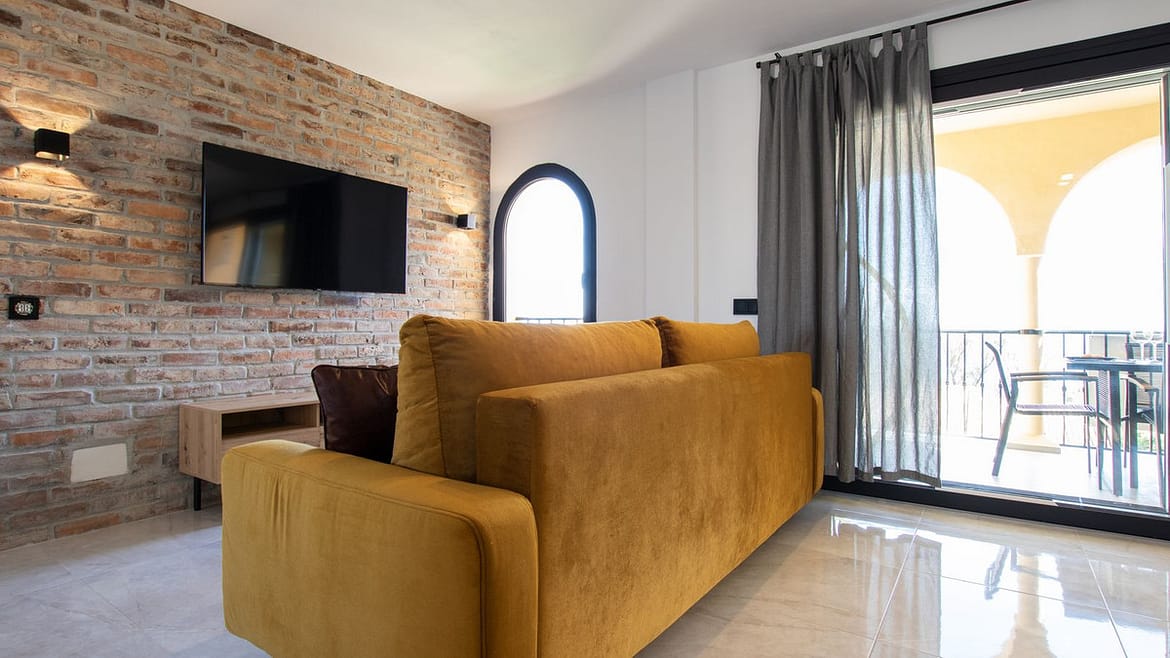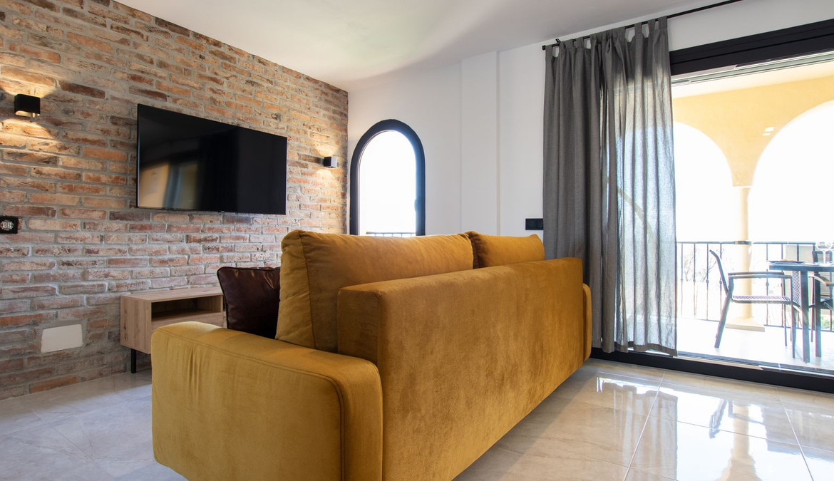 This amazing unit, has a well thought loft (New Yorkish) style decoration and comes with 2 exterior bedrooms and 2 full bathrooms, open plan and fully equipped kitchen with a large island and many windows in the living room and the kitchen for amazing sea views from all the corners of the property. The kitchen has a washing and drying machine, dishwasher, microwave, fridge, oven, hob, toaster and full set of cutlery and crockery. From the terrace there are beautiful panoramic sea views and a large dinning table with 6 cozy chairs. This property is completely new, 100% refurbished by our team and it is now available for rentals. In the bathrooms there are modern walk-in showers, and suspended toilets of modern minimalistic design. The living room is spacious and bright and on the sofa bed inh the living room can sleep 2 people. There is a smart TV and of course unlimited internet. In the summer months it is available for vacational rental and in the winter months it can be as well rented for a few months, with a monthly price of 1850 Eur per month from October until March. Also in winter months, apart from the rental price the tenants need to pay for utilities (water, internet and electricity). Contact us for more information regarding this unit in lower Torrenueva, Mijas Costa. This community has a private exit to the beach, just next to the restaurant el Oceano that is frontline beach, and once on the beach you can walk 5 minutes to the center of La Cala de Mijas city with so many amenities. In Torrenueva, as well walking distance from the apartment, at the bottom end of the same street there are a few bars, restaurants and a supermarket. In this gated community there is alarge communal pool and a small pool for kids. We speak more than 10 languages, contact us for more information on this unit, in the same community just next door we have another newly refurbished unit with max capacity of 6 people sleeping as well so if you are a large group of friends and / or family you can be door to door for extra comfortable vacations.