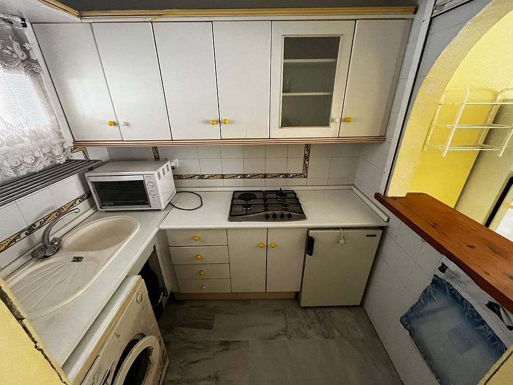 We offer to the market a spacious 2 bed apartment in a sought-after area in Benalmádena Costa. Only 5 minutes walk to the beach and near all important amenities, this apartment offers the opportunity to buy and reform an ideal home. The area, on Avenida de las Palmeras is popular with tourists and Spanish residents alike, who are attracted by the lively atmosphere and facilities available.