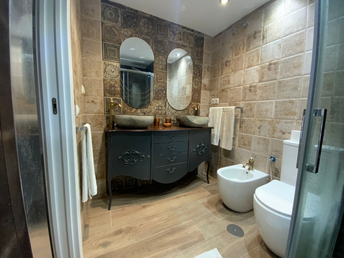 Two bathrooms: The one included in the master bedroom has a slate shower tray, hydromassage column with rainwater and glass screen. Natural stone sinks.
