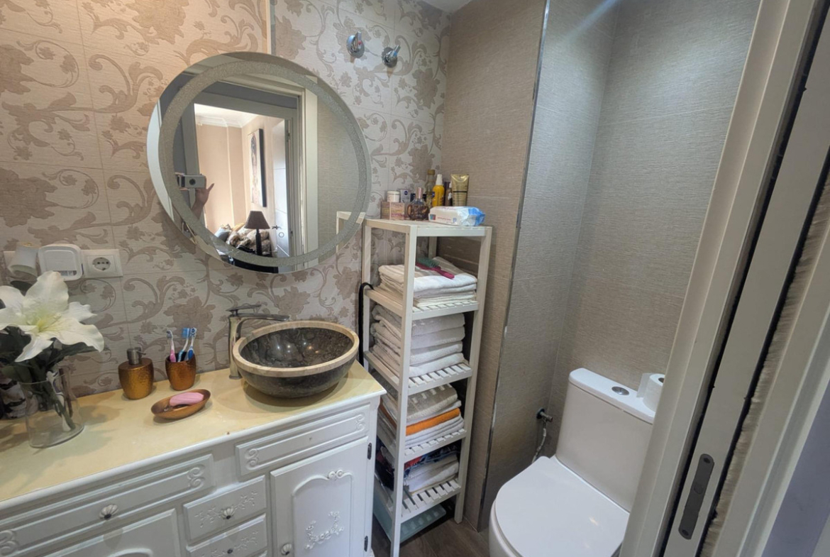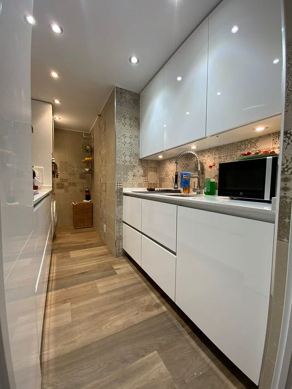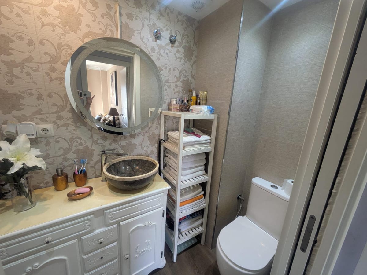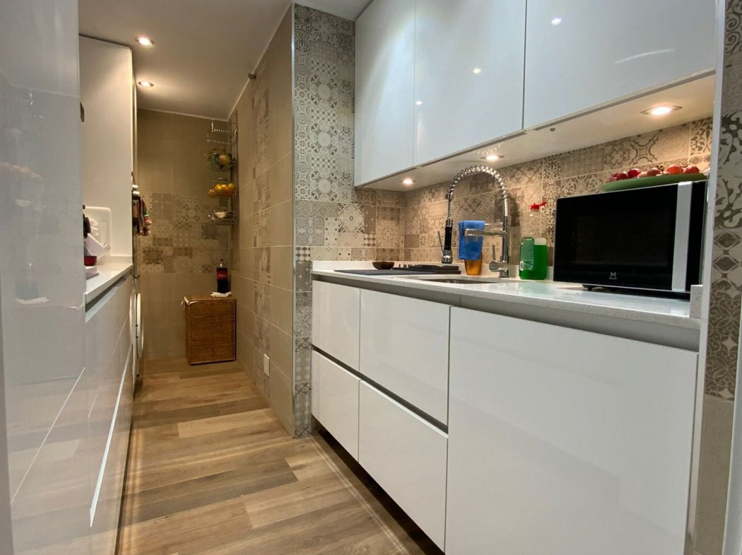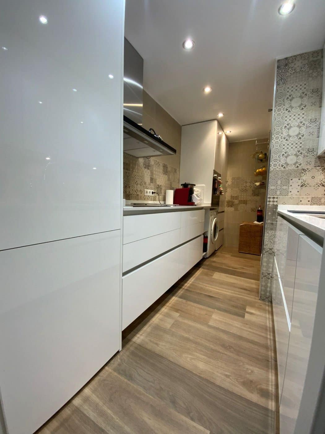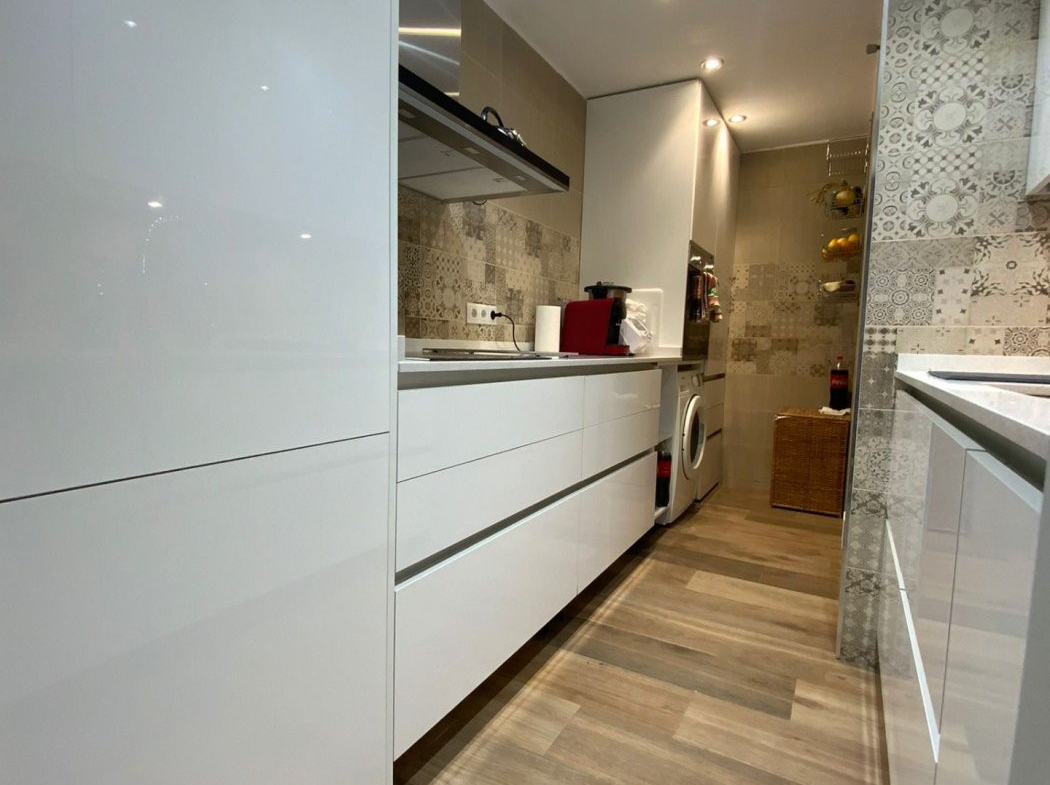 Large independent kitchen fully furnished with large storage capacity and paneled electrometrics. It has a washing machine, dishwasher, oven, microwave, induction hob, extractor hood, two-handle shower taps, etc. Silestone countertop.