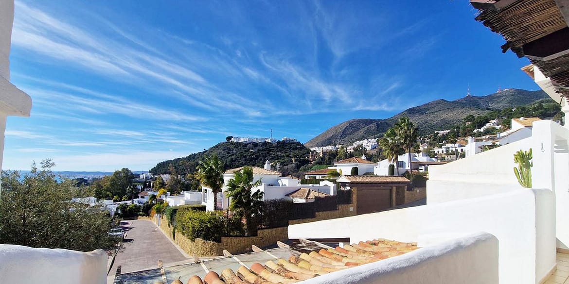 Spacious apartment with sea views for sale on the Costa del Sol in a charming residence in Benalmádena. This property boasts generous living spaces and a beautiful terrace with exceptional sea views. The residence is peaceful and well-maintained, just three minutes from Benalmádena Pueblo, a picturesque Andalusian village with cobbled streets and a traditional atmosphere, and also a three-minute drive from the Mediterranean coast and beaches of Benalmádena Costa.