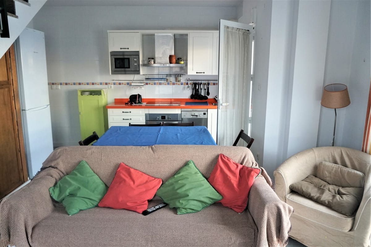 Beautiful duplex flat in first line beach, with wonderful views to the sea. It has an open plan kitchen, which opens onto a small balcony. It is next to the cosy living room. On the same floor there is a bathroom and a double bedroom, which also includes a desk. On the first floor is the master bedroom, with a small living room and its own bathroom. This duplex is in perfect condition and is located in a very quiet area, it does not have many neighbours in the winter. It also includes a storage room and an underground parking space. We are pleased to be able to present this dream property to you soon, either personally or via virtual viewing. Because this world, it is unique – just like our Axarquía. In Andalusia. On the Costa del Sol. Here, on the sunny side of life…