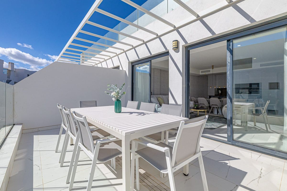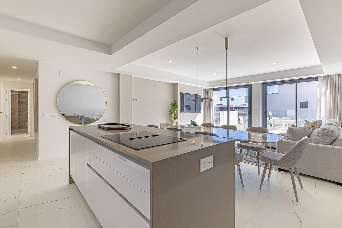 From the living room, there is direct access to a large private terrace with sea views — perfect for relaxing, dining outdoors, or simply enjoying the wonderful Mediterranean climate.