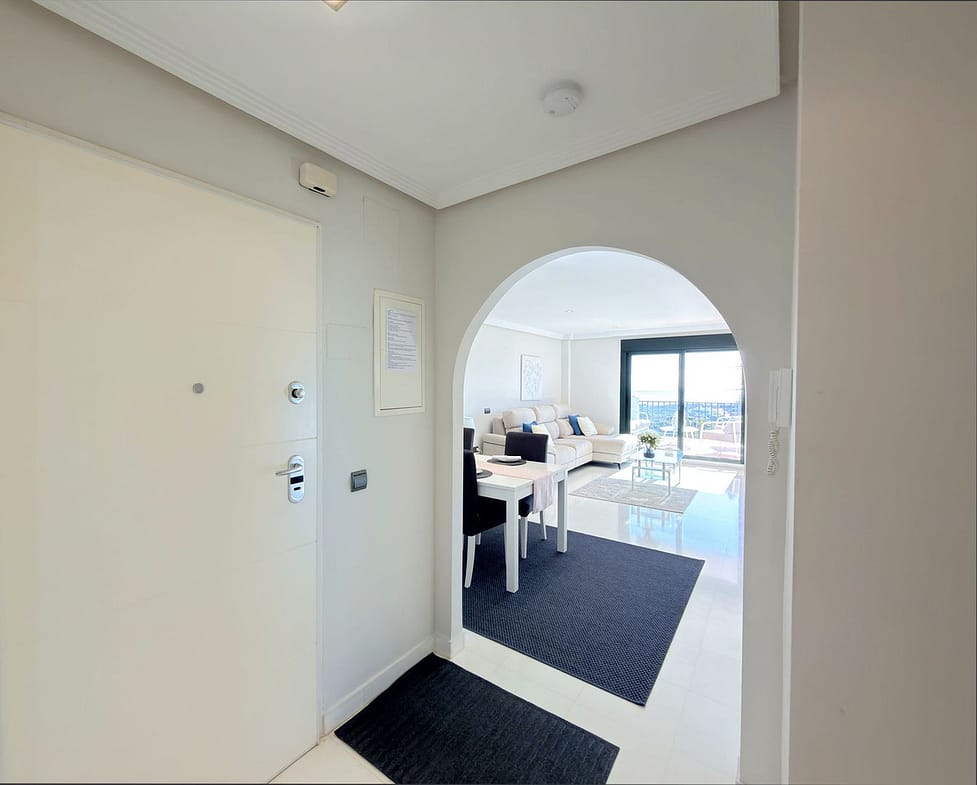 Spectacular apartment with golf and sea views in Casares Costa. Located in one of the most promising areas of the Costa del Sol, it perfectly combines tranquility, exclusivity, and proximity to the main destinations in the area. The property is situated between the prestigious Finca Cortesín and Doña Julia golf courses, surrounded by new luxury developments, and with the upcoming opening of a hotel by the renowned Conrad chain, enhancing the attractiveness and value of the surroundings. It is just 25 minutes from Marbella and 15 minutes by car from Sotogrande, both highly regarded for their gastronomy, shopping, leisure options, and international prestige. Only five minutes by car away, you can enjoy beautiful sandy beaches and a wide promenade with an excellent variety of restaurants, beach bars, and entertainment areas, all within a peaceful residential environment that is perfectly connected and close to all daily amenities. The apartment, located on the first floor with south-facing orientation, enjoys open views of the golf courses and the sea, with natural light filling every room, creating a sense of space and well-being. The property is in perfect condition, with generous spaces, meticulous presentation, and high-quality finishes. The spacious and bright living room opens onto a magnificent terrace with two distinct areas: a cozy chill-out zone and an outdoor dining space, perfect for enjoying almost the entire year thanks to the area's privileged microclimate. It has two comfortable bedrooms and two bathrooms, one en suite in the master bedroom, providing comfort and privacy. The property is within a gated community, part of a large complex with 24-hour security, well-maintained gardens, and pools for adults and children. It includes a parking space and storage room. A new opportunity on the market, ideal as a permanent residence, second home, or quality investment. Contact us to discover everything this home has to offer.