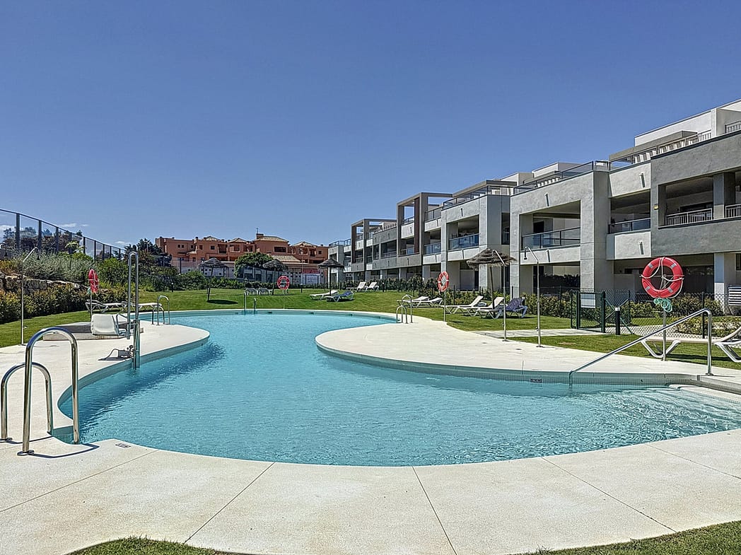 This beautiful apartment features two bedrooms and two bathrooms, with stunning views of the gardens and the communal pool. It also offers a partial sea view.
