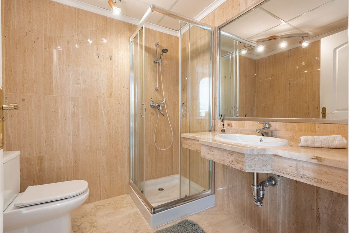 The location is excellent – just five minutes from local shops, supermarkets, banks, a bakery, and restaurants, as well as Santa María Golf and Elviria’s beautiful sandy beaches. Marbella town centre is only 15 minutes away, and Málaga Airport can be reached in about 30 minutes.