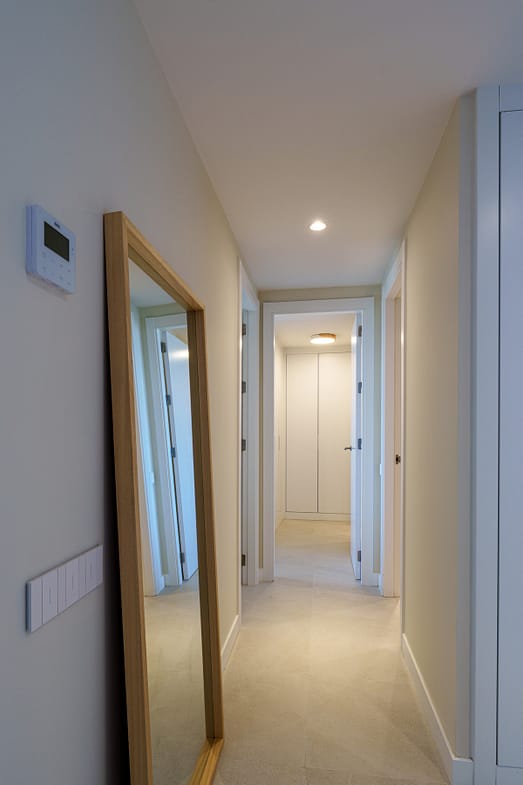 The apartment features two generously sized bedrooms, both filled with natural light and decorated in soothing neutral tones which provides direct access to a private terrace, offering the perfect spot to enjoy your morning coffee or unwind in the evening. The two bathrooms are beautifully designed with contemporary fixtures with underfloor heating