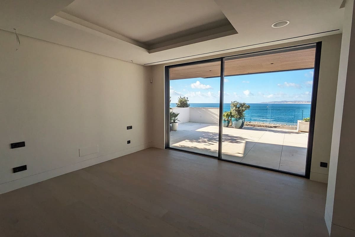 Luxurious two bedroom first floor apartment for sale in this exclusive seafront resort offers a contemporary design, ample interior spaces with views out into the Mediterranean through enormous windows, and extensive terraces with private pools. The use of high-quality materials and cutting-edge technology make this development a real gem. All the homes come with at least two large garage spaces and one storeroom.