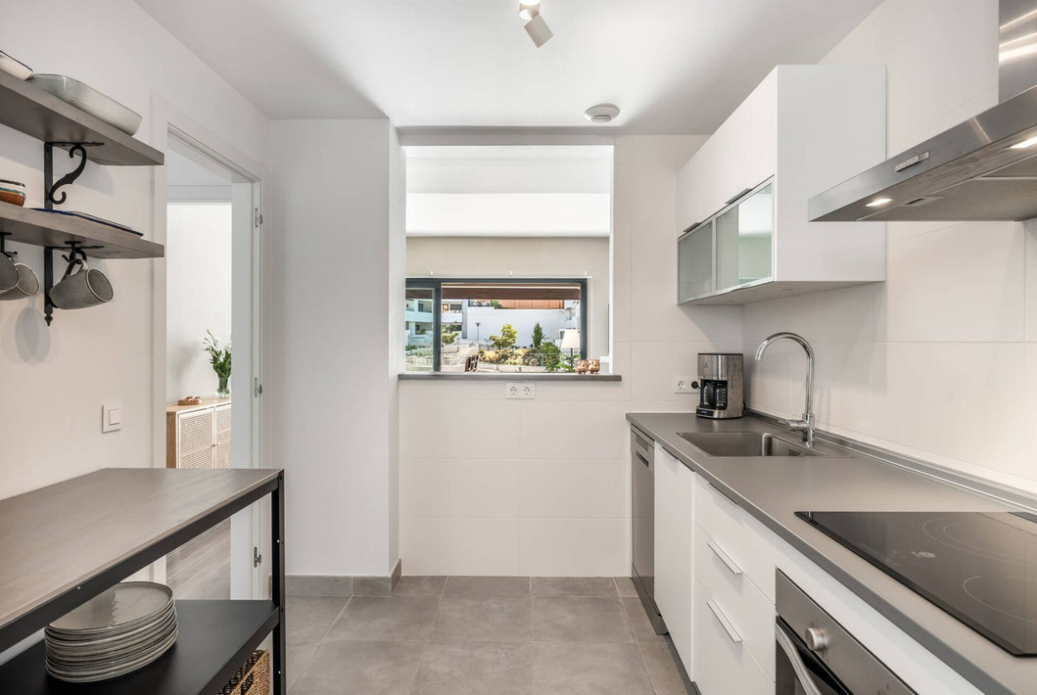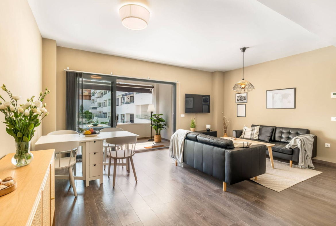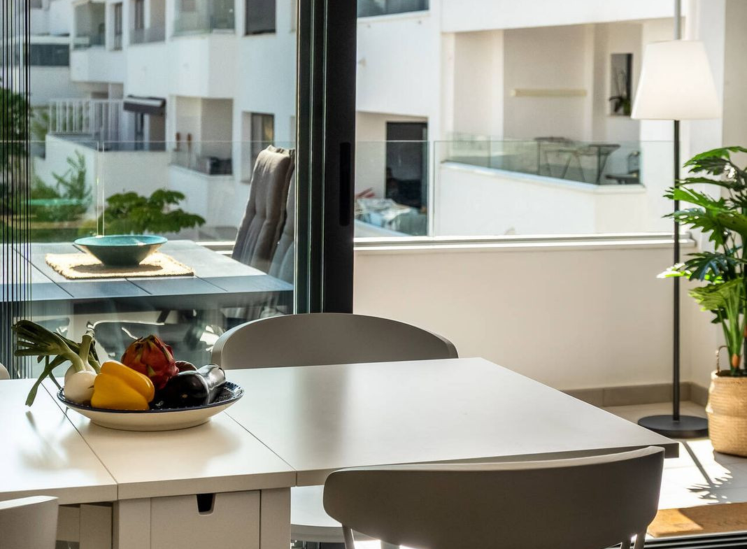 In addition to the pool, the community offers an outdoor gym and a children?s playground. A home that suits both permanent living and holidays for those seeking a stylish, practical, and ready-to-move-in dream property in the heart of Estepona, close to everything.The apartment is primarily sold furnished, with a carefully selected interior. It is modern, bright, and timeless in a Nordic style.
