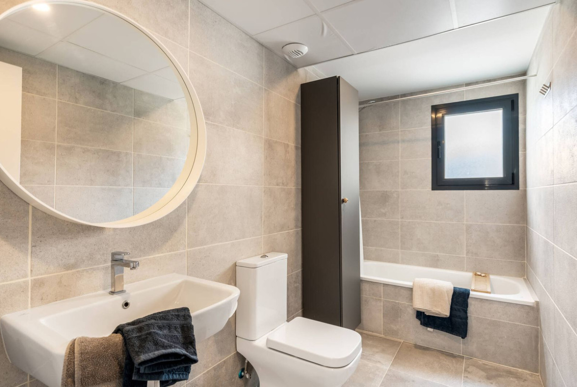 This bright and well-maintained apartment, completed in 2021 and never rented out, offers the feeling of new construction with smart upgrades that enhance the quality of living. The open-plan layout creates a spacious and social area between the kitchen, living room, and balcony. Located on the third floor, the apartment enjoys abundant natural light. From the balcony, you can overlook the pleasant pool area. The property also includes a garage space and a storage room, both accessible directly by elevator.The apartment consists of two spacious bedrooms with ample storage. Mechanical ventilation and air conditioning throughout ensure a comfortable temperature all year round.