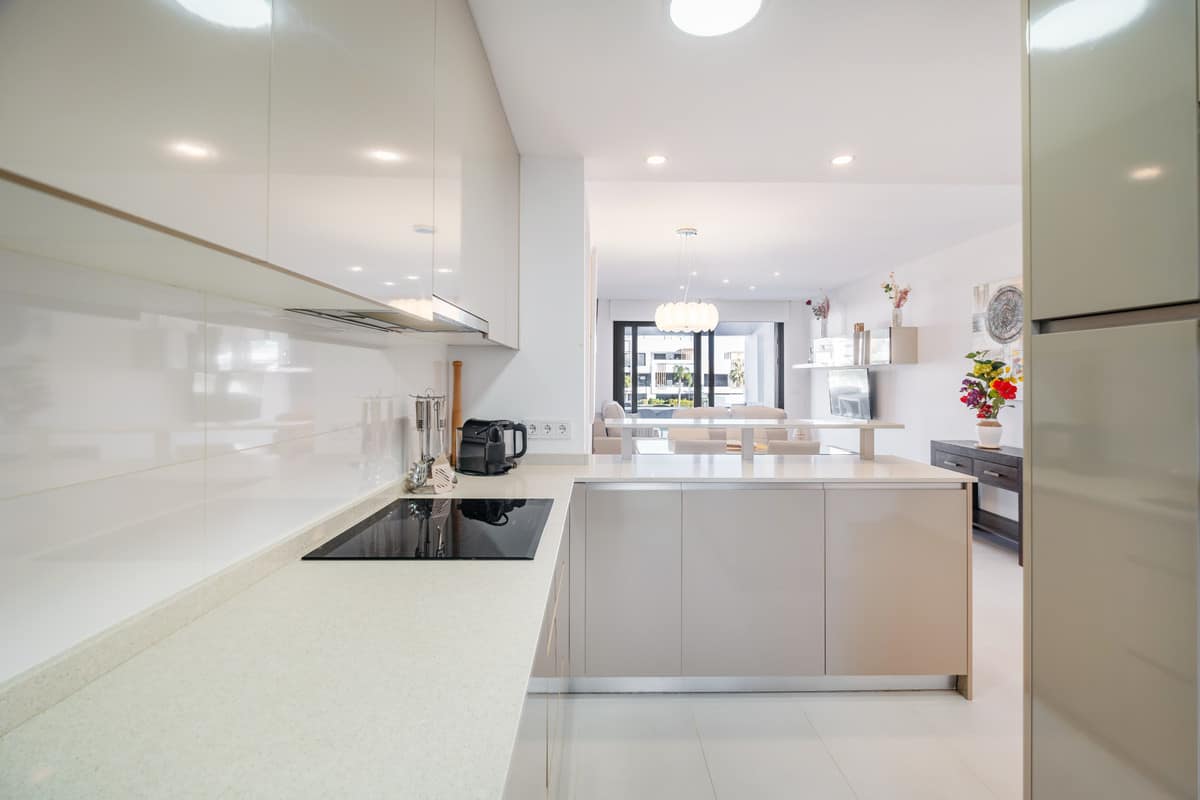 The property offers two spacious bedrooms and two modern bathrooms, including a master bedroom with en-suite. Designed for comfortable Mediterranean living, the apartment features a stylish open-plan kitchen seamlessly connected to the living and dining area, creating a welcoming and functional space ideal for both everyday living and entertaining.