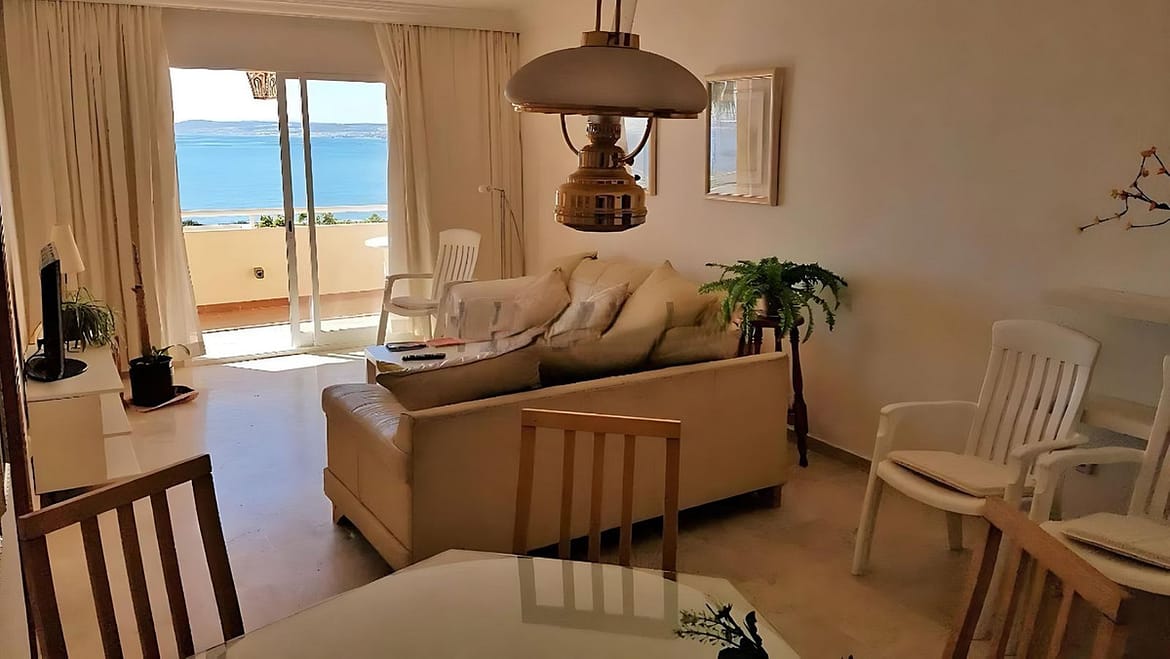 Spectacular apartment on the Beachfront, with open views of the Mediterranean Sea, Gibraltar and Africa. Located in a beautiful and well-kept urbanization just 5 minutes walk from the Estepona Marina, and surrounded by all kinds of services such as restaurants, bars and shops. It is a gated community, with two swimming pools, green areas, with direct access to Playa del Cristo.