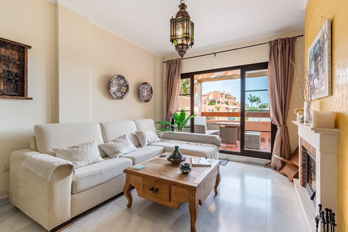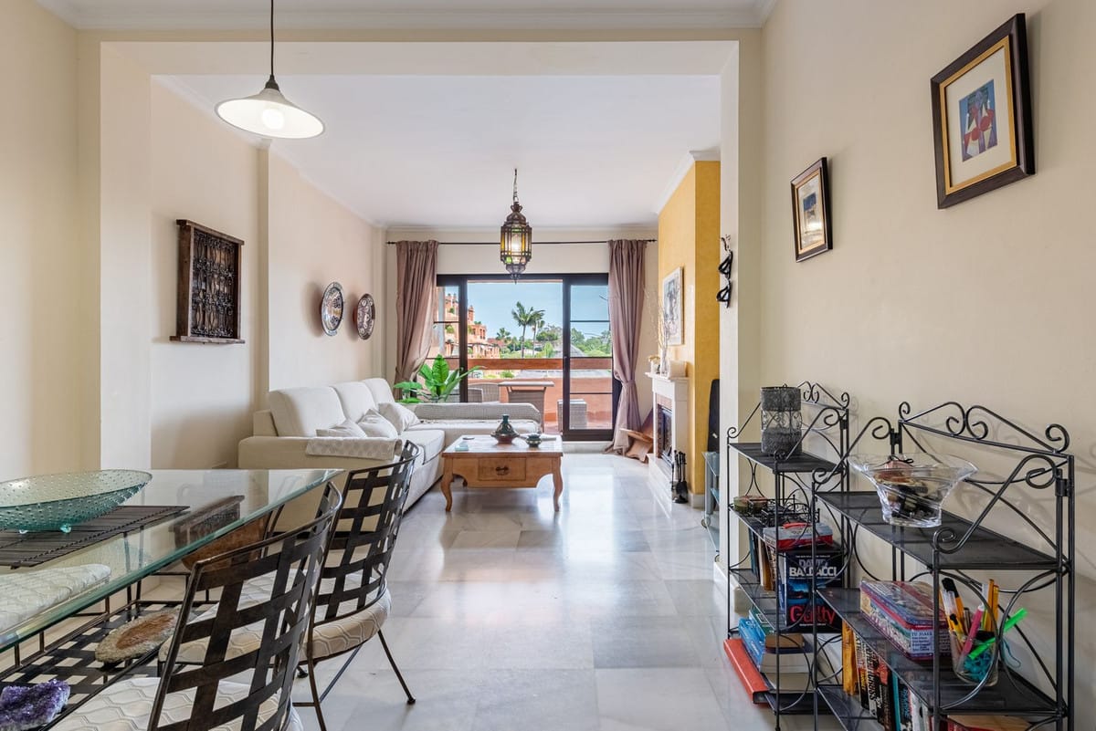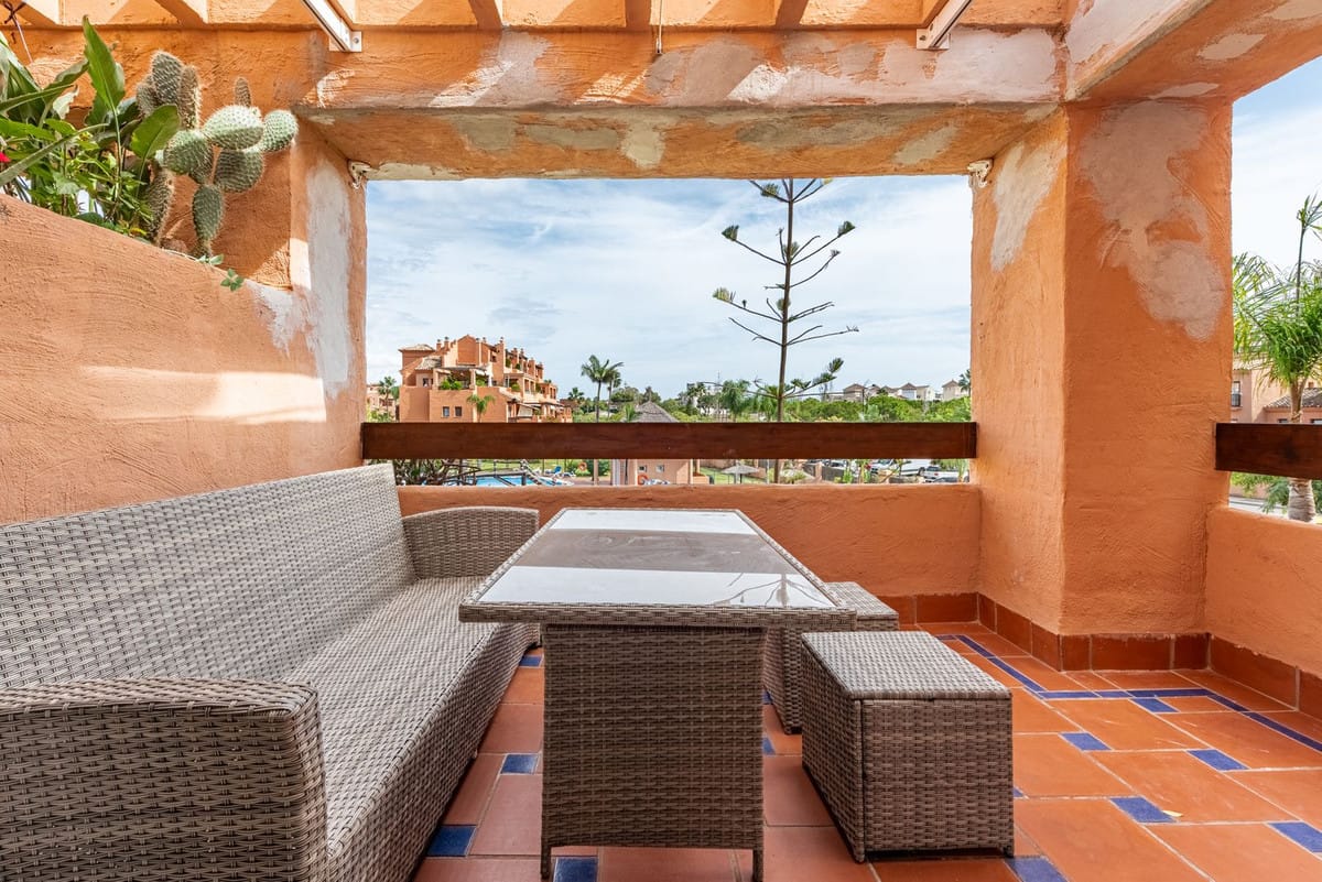 A beautifully located first-floor apartment in the highly sought-after Hacienda del Sol development. The apartment features a spacious master bedroom with an en-suite bathroom, a second bedroom, and a family bathroom. The terrace overlooks one of the stunning swimming pools, making it an ideal holiday home. The sale also includes a parking space and a storage room.
