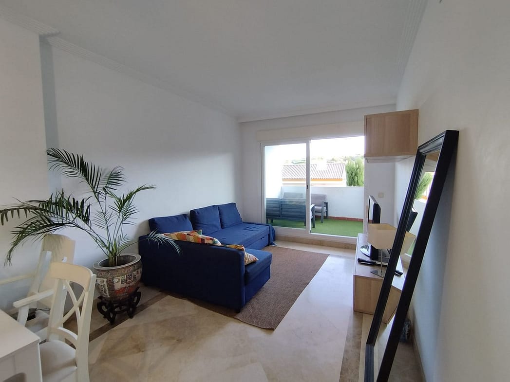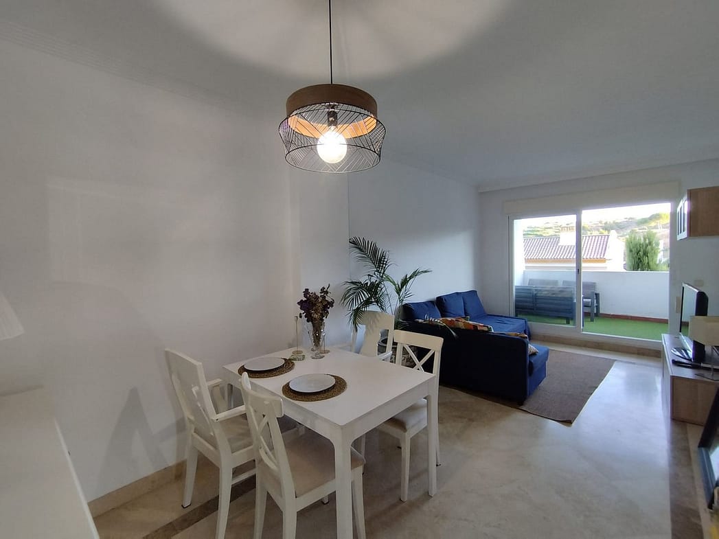 Corner apartment for sale, WITH A VALID VACATION LICENSE, in the Cala de Mijas area, Urb Calanova Grand Golf, next to the Calanova golf course. The apartment is ready to move into. It has a surface area of 80 m2, including a 10 m2 terrace facing southwest and overlooking the golf course.