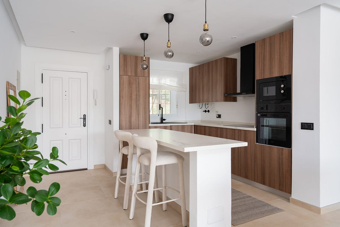 This beautifully renovated two-bedroom, two-bathroom apartment in Mirador La Quinta offers a perfect balance of contemporary comfort and stunning surroundings. Positioned on the middle floor, it enjoys panoramic views of the sea, mountains, and golf course, creating a calm and elevated atmosphere.