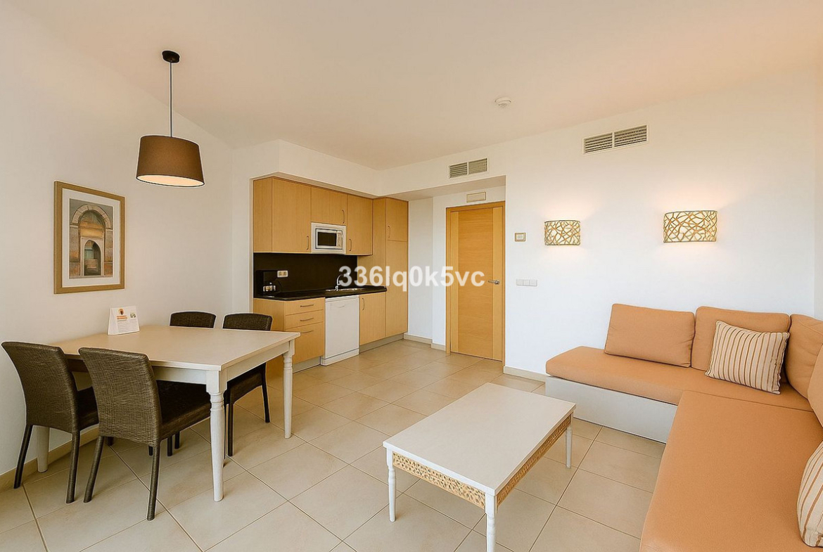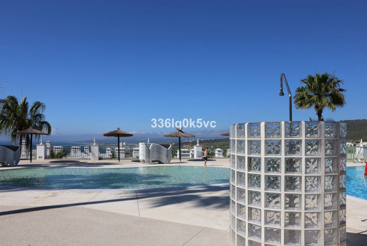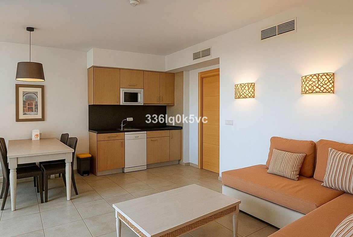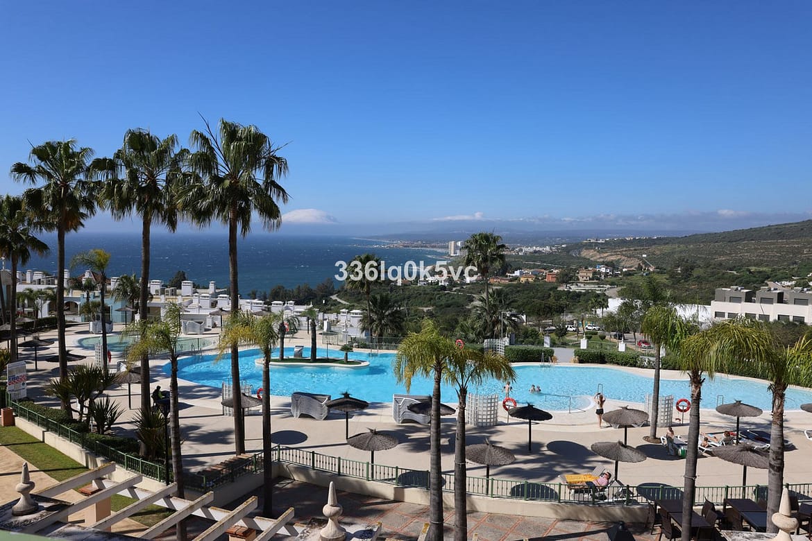 Nice and cosy apartment for sale in Manilva. The apartment has two bedrooms, two bathrooms, equipped kitchen and living room. It is situated in an authentic Andalusian holiday village, with two pools, a restaurant, bar and views to the street of Gibraltar. In the urbanisation you can find a space for children, a space to play football, basketball and handball. It is located 500m from the sea. A rental contract is in place. The complex is gated, providing security, which is an attractive feature for potential tenants and buyers. And the harbour and beach of Sotogrande just 5 minutes away by car.