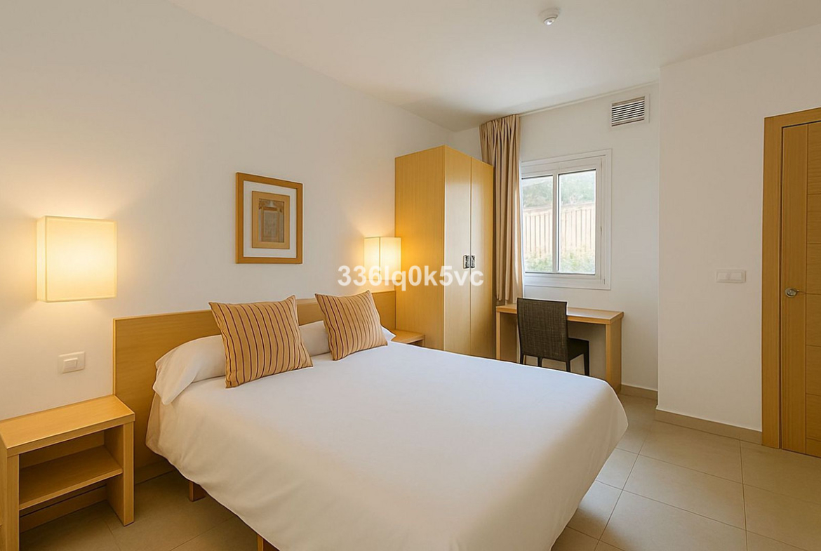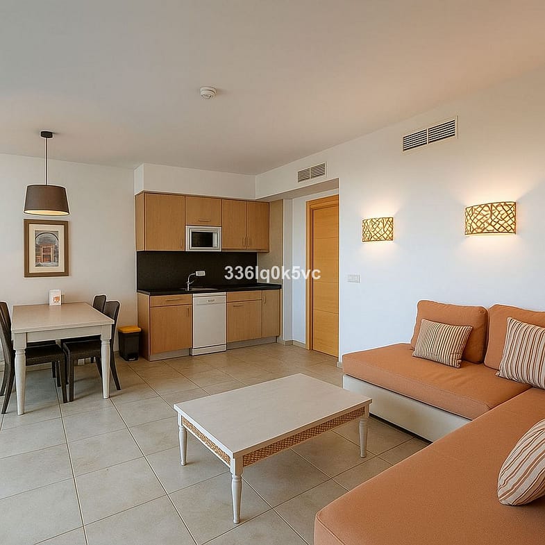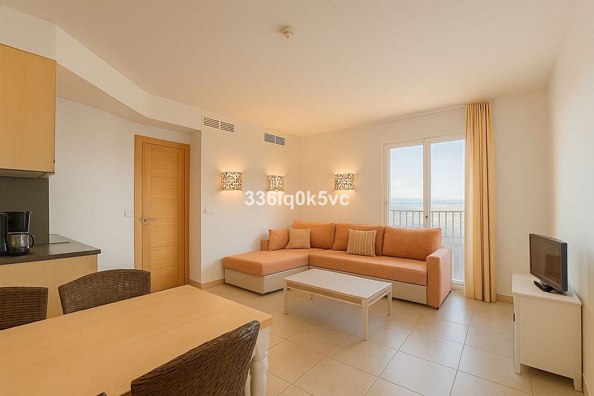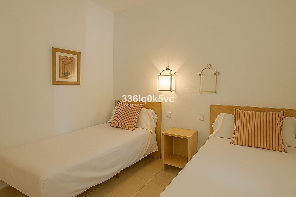 Nice and cosy apartment for sale in Manilva. The apartment has two bedrooms, two bathrooms, equipped kitchen and living room. It is situated in an authentic Andalusian holiday village, with two pools, a restaurant, bar and views to the street of Gibraltar. In the urbanisation you can find a space for children, a space to play football, basketball and handball. It is located 500m from the sea. A rental contract is in place. The complex is gated, providing security, which is an attractive feature for potential tenants and buyers. And the harbour and beach of Sotogrande just 5 minutes away by car.