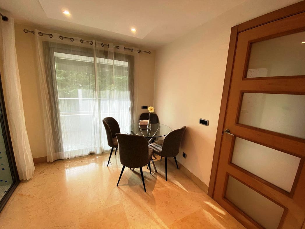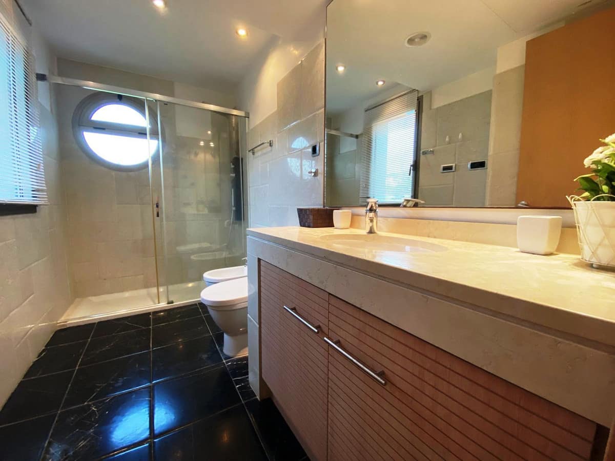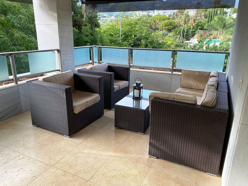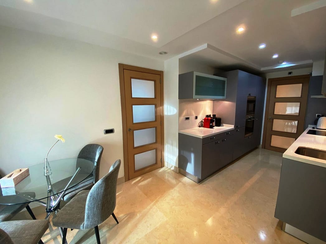 MODERN APARTMENT FOR SALE IN THE JARDINES DEL PRINCIPE URBANIZATION IN THE CENTER OF MARBELLA NEXT TO THE BEACH. EAST-WEST ORIENTATION, PARK VIEWS, BUILT AREA OF 169M2 (THE TERRACE 37M2), 2 PARKING SPACES, 1 STORAGE ROOM. IT HAS 2 BEDROOMS WITH 2 EN-SUITE BATHROOMS, 1 GUEST TOILET, LIVING-DINING ROOM, KITCHEN WITH MIELE APPLIANCES WITH BREAKFAST AREA, LAUNDRY ROOM, LARGE TERRACE WITH STORAGE AND VIEWS OF THE MUNICIPAL PARK. IN THE BATHROOMS, UNDERFLOOR HEATING IS INSTALLED. ELECTRIC SHUTTERS, COLD-HEAT AIR CONDITIONING, BUILT-IN CLOSETS. IN THE URBANIZATION, THERE IS A SWIMMING POOL, COMMON AREAS, 24-HOUR CONCIERGE, GYM FOR OWNERS.