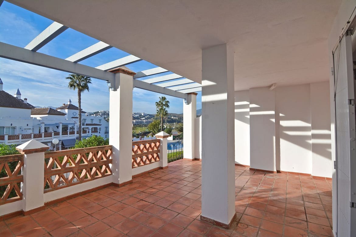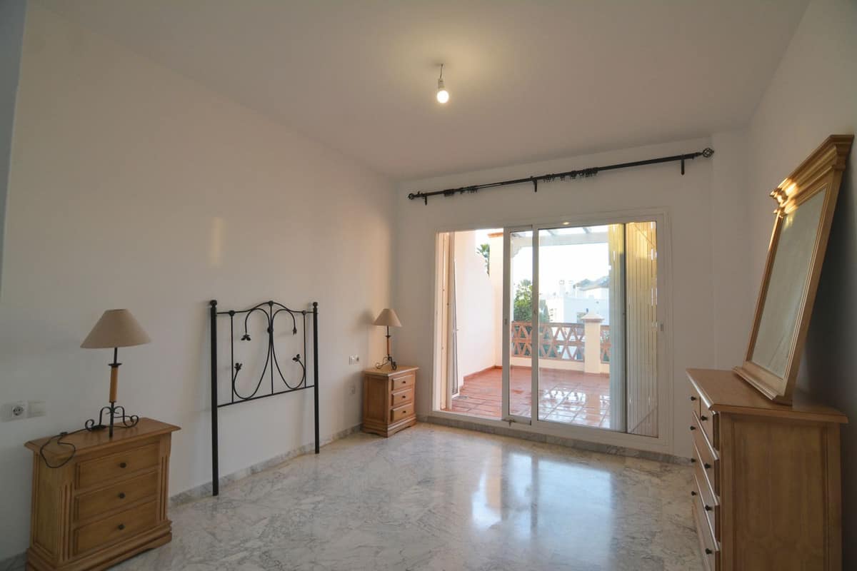 The residential complex boasts beautifully maintained green areas and a magnificent communal pool with open views of the mountains. In addition, the golf course can be seen from within the urbanisation, providing a peaceful and exclusive environment.