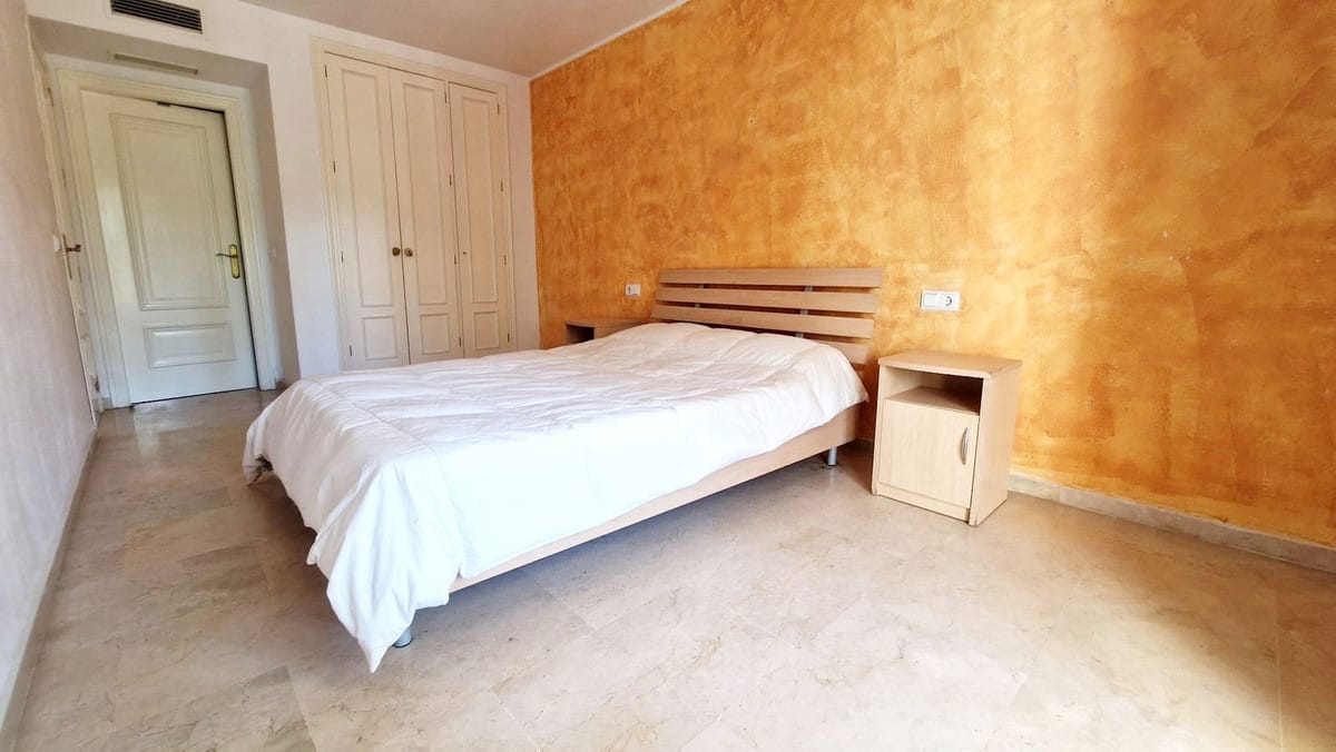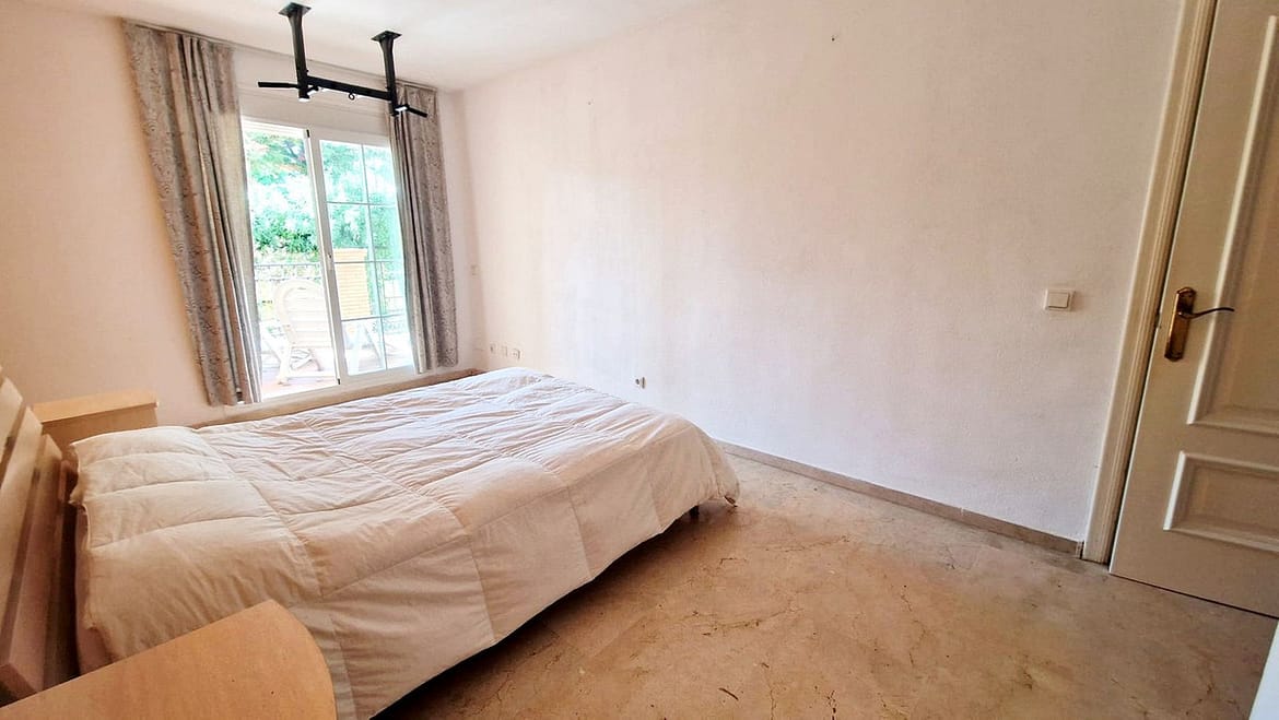 On the golf and with a beautiful environment, fantastic sunny and bright apartment with a large west facing terrace overlooking the pool and sun until the sunset. This property offers 2 bedrooms with fitted wardrobes, both with access to the terrace and the master one is huge with en suite marble bathroom. Completely fully equipped kitchen with new white goods opened to the lounge. This property has A/C, marble bathrooms and floors and a very large underground parking included in theprice. It is set in a well known urbanisationin Mijas Golf just ten minutes driving to the Fungirola beaches. Bus stop near by also. Ideal for golfers or rentals! We highly recommend the viewing, you will fell in love with.