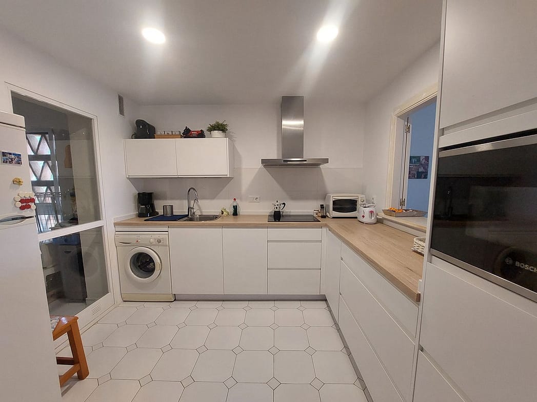 The recently renovated kitchen is designed for functionality and space and has an adjoining laundry area.