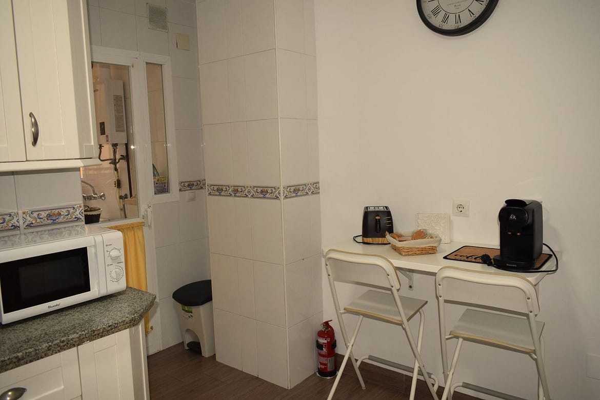 We are offering this magnificent apartment with a Tourist License for sale. It is located at Avenida La Rosaleda 21, next to the river. The apartment is fully furnished and decorated with the latest trends. It is a first-floor apartment with a south-facing orientation, which provides plenty of natural light. The master suite is very spacious with a built-in wardrobe and a balcony overlooking the street. The second bedroom has two single beds (90 cm) and a built-in wardrobe. There are two bathrooms, one with a bathtub and the other with a shower. The separate kitchen is very spacious and includes a utility room with a washing machine and a natural gas water heater. Finally, the living-dining room is stylishly decorated and has a lovely glazed bay window. The apartment has central air conditioning with a heat pump in all rooms. A parking space in the same building is included. The monthly community fees are €57 (plus 20% for tourist accommodation), and the annual property tax (IBI) is €324.