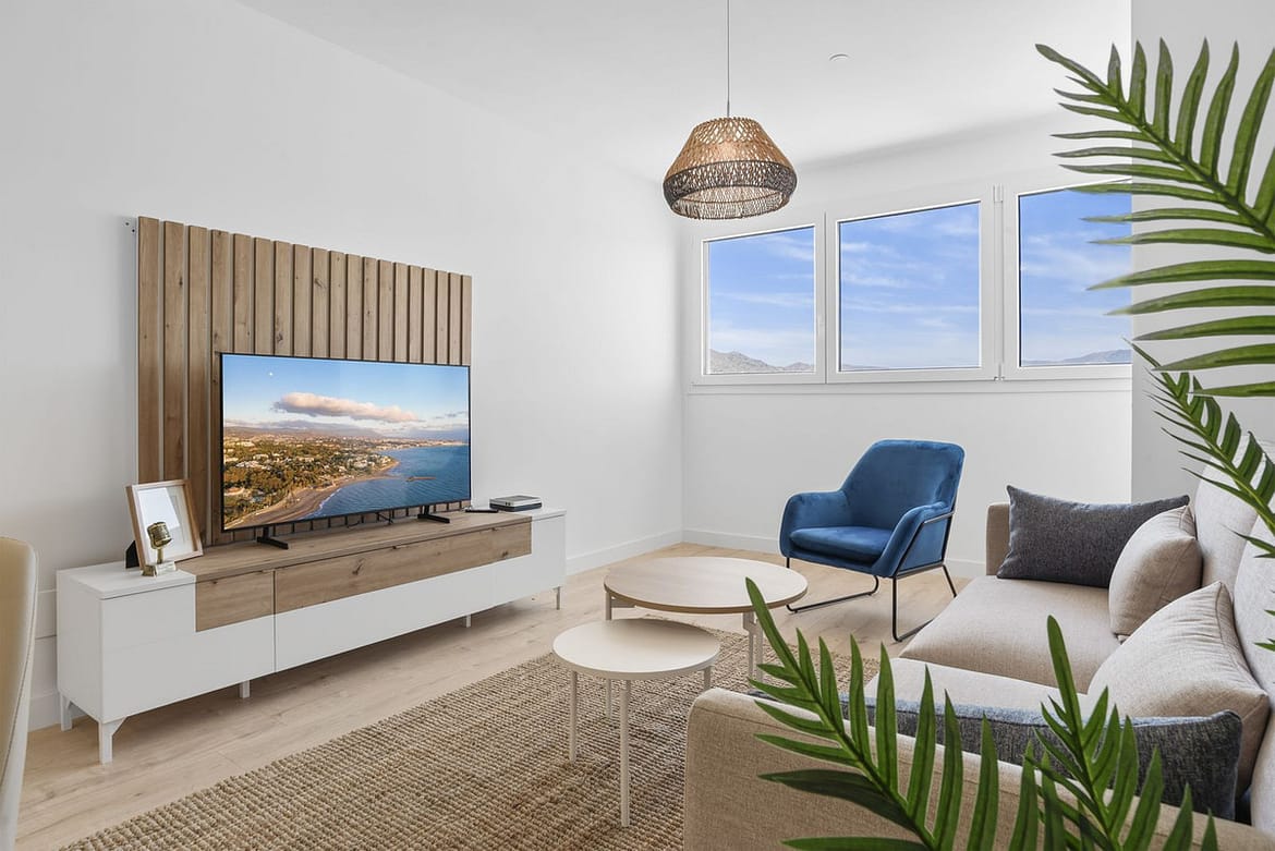 Experience elevated city living in this exceptional 24th-floor apartment in one of Málaga’s most exciting new residential developments. Perfectly positioned in the heart of the city, this sleek and modern home offers spectacular panoramic views over the city skyline, mountains, and Malaga football stadium. The layout includes a spacious living and dining area, a fully fitted modern kitchen, two bedrooms and two bathrooms, one en-suite. The apartment is presented as brand new, fully furnished and has never been lived in or rented out.