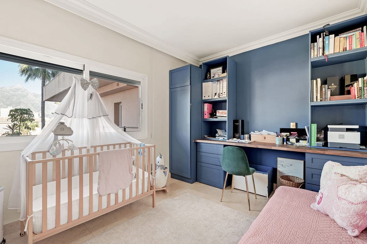 The masterbedroom has an en-suite bathroom with walk-in shower and jacuzzi bathtub and from the bedroom there is access to both the balcony with views to La Concha as well as access to the main terrace.
