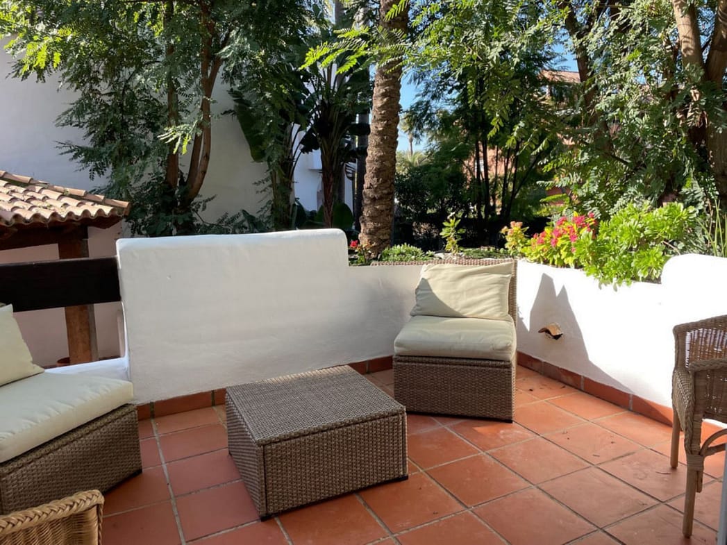 This property, located just a five-minute walk from the renowned Mistral Beach, a fifteen-minute walk from Puerto Banús, and five minutes from the San Pedro seafront promenade, offers a prime location. It is close to a variety of shops, markets, and restaurants. With a surface area of 122 square meters, the apartment is characterized by its brightness. It comprises a spacious and elegant living-dining room that opens onto a terrace, two bedrooms, two bathrooms, and a fully equipped kitchen. The separate, bright kitchen includes a laundry area with a washer/dryer and dishwasher. The master bedroom, with access to a private terrace, is spacious and features an en-suite bathroom and a wardrobe. The second bedroom, overlooking the internal garden, has a small Juliet balcony and a full bathroom. The apartment is equipped with centralized air conditioning (heating and cooling) with individual temperature controls in each room, as well as electric radiators. The price includes a parking space and a large storage room.