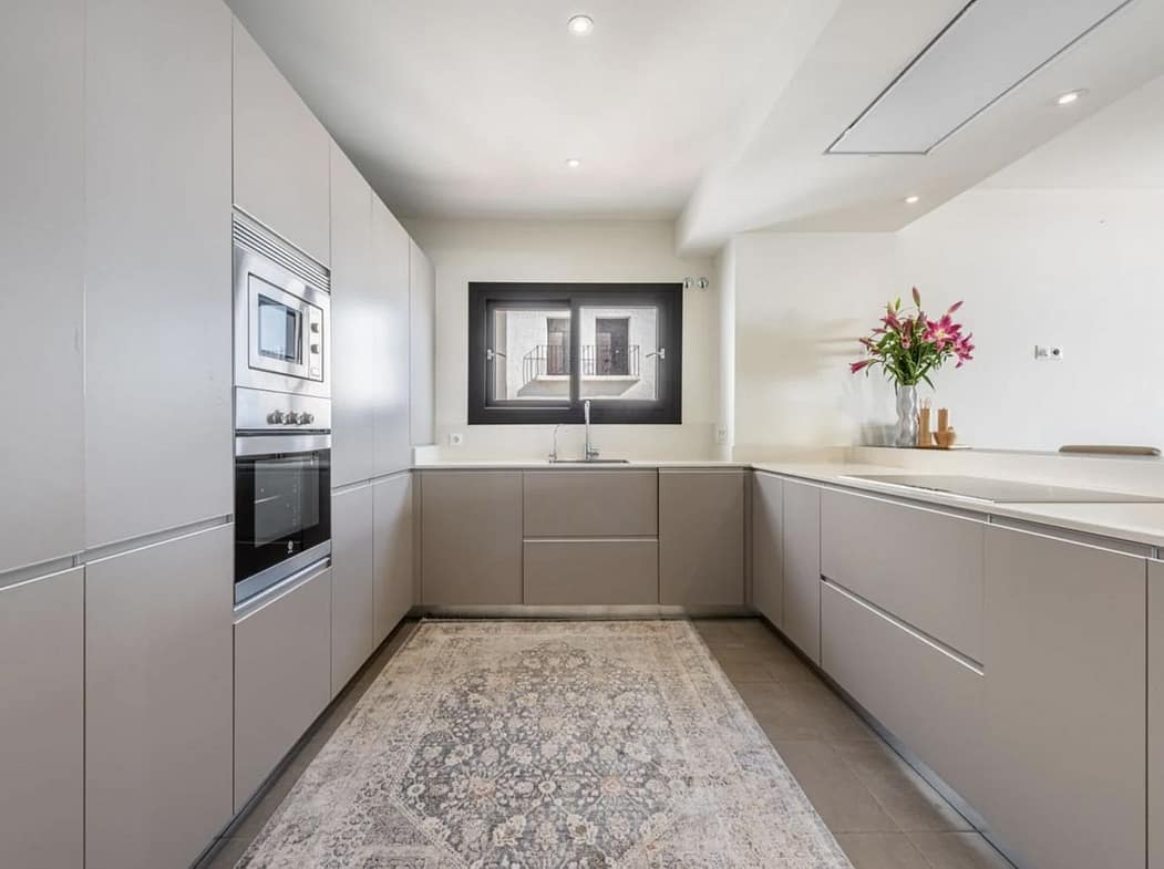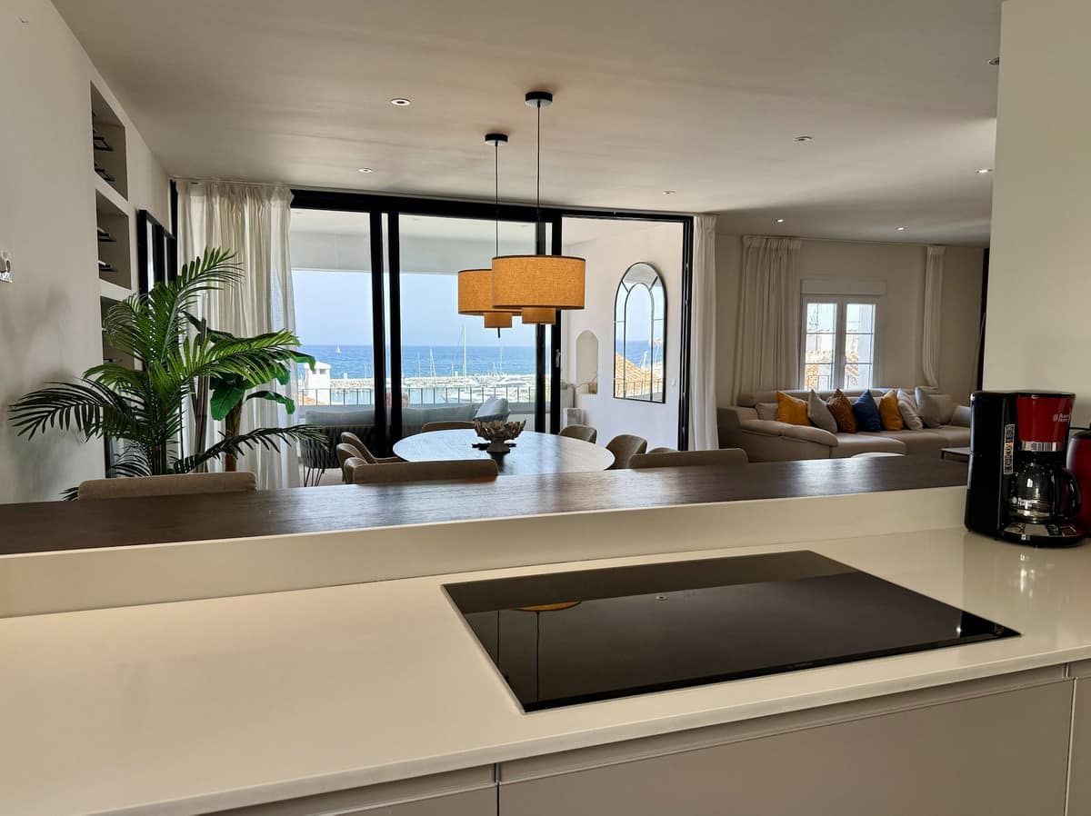 From the main areas of the living space we have beautiful open views over the sea and port. The open-plan kitchen flows seamlessly into the living and dining area with generous space and light. Large sliding doors frame the ever-changing harbour views and open onto a spacious covered private terrace, the perfect setting for a morning coffee, a quiet afternoon, or evening sunsets over the exclusive marina. A fireplace adds another layer of comfort and elegance to the living room.