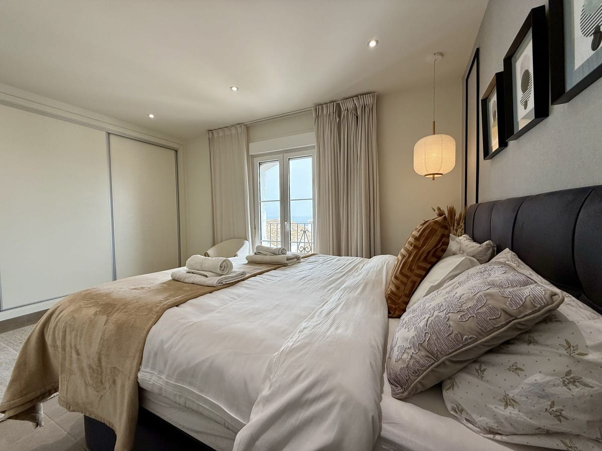 Continuing to the bedrooms, both very private and both en-suite and generously sized, each with French balconies that bring in light and air. One of the bedrooms enjoys a direct outlook over the harbour where you'll wake up with sea views directly from your bed. The bathrooms are spacious and timeless in design using high-quality material.