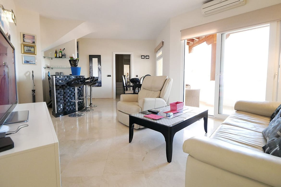 An amazing property for sale in Cabopino Port that has been totally renovated to a very high standard from top to bottom. The property has beige marble flooring throughout the apartment two new bathrooms, new stairs, and a new kitchen. This property has two bedrooms and two bathrooms plus an extra room upstairs with two bunk beds that can be used as an emergency third bedroom for extra guests. This property has three terraces and does have sea views from the main terrace. We strongly recommend a visit.