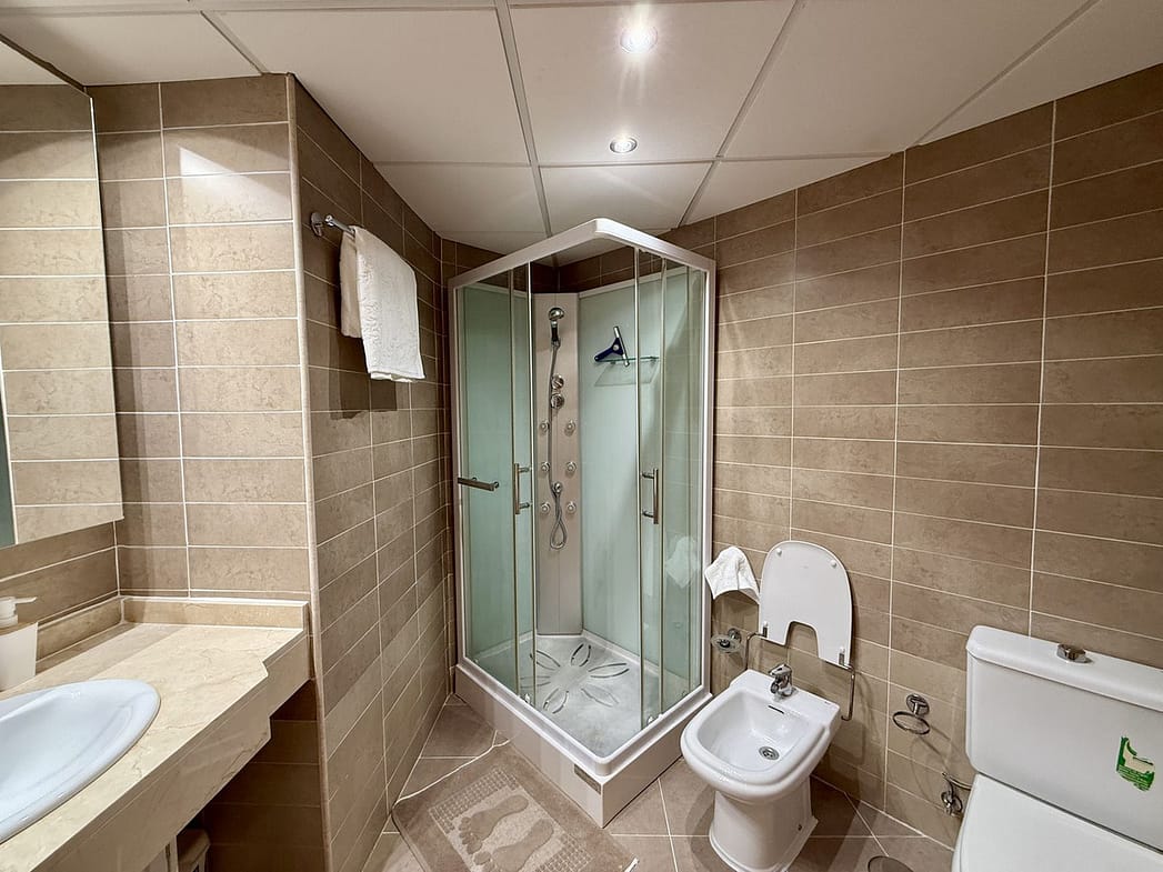The home features 2 bedrooms and 2 bathrooms, including an ensuite, with a built size of 80 m² plus a generous 21 m² private terrace. The apartment is south-facing, ensuring plenty of sunshine throughout the day, and boasts panoramic views of the sea and pool.