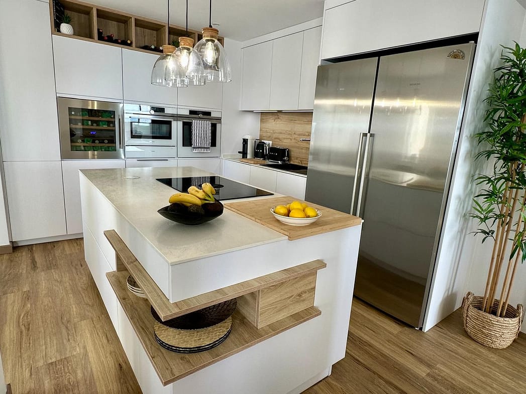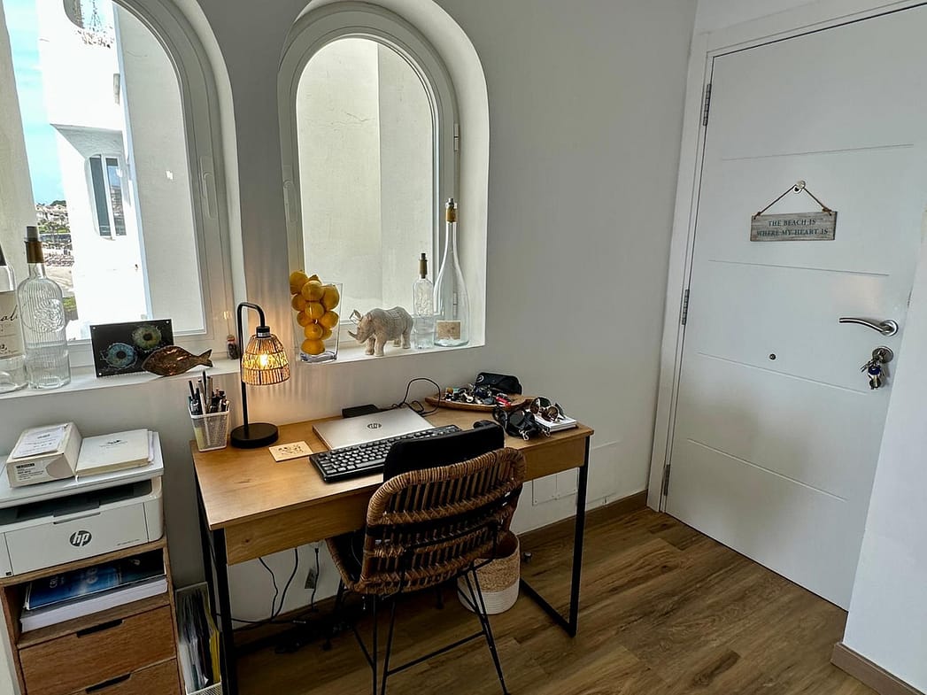 FRONT LINE BEACH / ALOUD HOLIDAY RENTALS . Spectacular apartment on the beachfront between the Riviera del Sol and Miraflores developments in a residential area right on the coastal promenade and magnificent beach with a large garden area, a large swimming pool, and private communal parking. The apartment is unique, with two bedrooms and two bathrooms, completely renovated and refurbished, with a high-quality island kitchen, fully furnished, and a terrace that feels like you're on a balcony overlooking the sea. Additionally, with an extra, the community accepts holiday rentals, a magnificent plus to make this gem profitable.