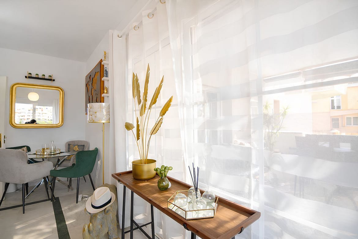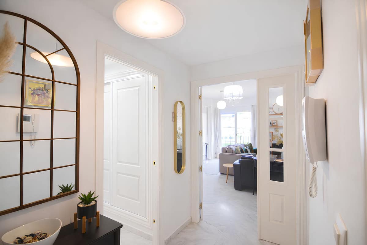 It features a spacious living room with direct access to a beautiful terrace, from which uninterrupted views of the golf course can be enjoyed, ideal for relaxing and making the most of the Costa del Sol climate.