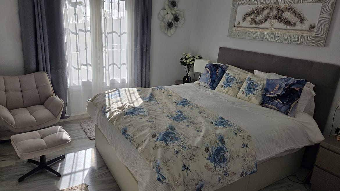 The property has a constructed area of 91 m². It features two bedrooms with built-in wardrobes, the master bedroom being particularly comfortable thanks to its en-suite bathroom.