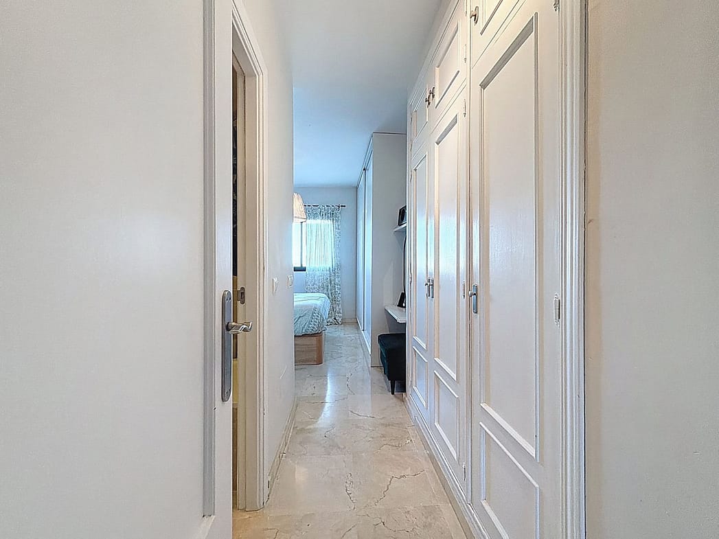 The open-plan kitchen connects seamlessly with the living space, enhancing brightness and spatial flow. The apartment also benefits from hot and cold air conditioning.
