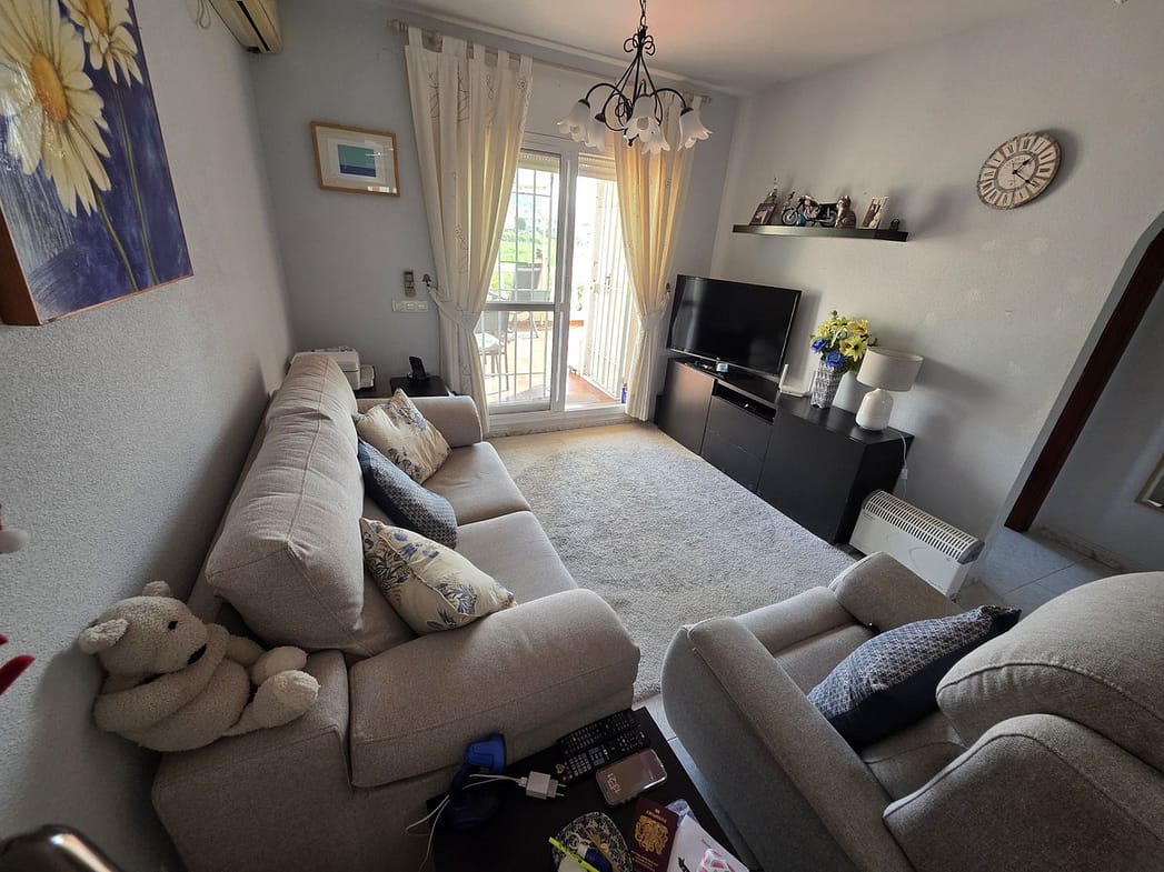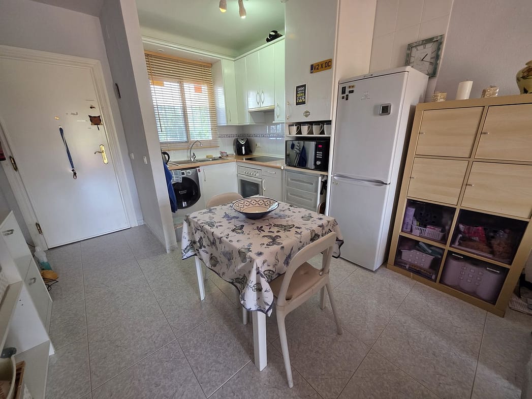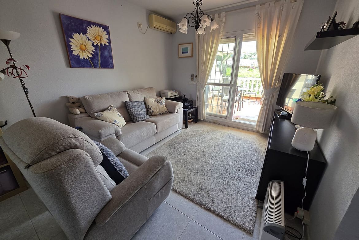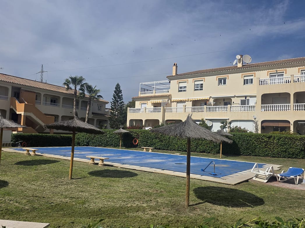 This apartment offers two bedrooms, one bathroom recently renovated, a kitchen and a living room. Access from the living room to a large terrace facing east. Short distance to the beach and all amenities. The property is part of a community offering a pool and large garden areas. Optional is to purchase a closed garage for 25.000Euros!