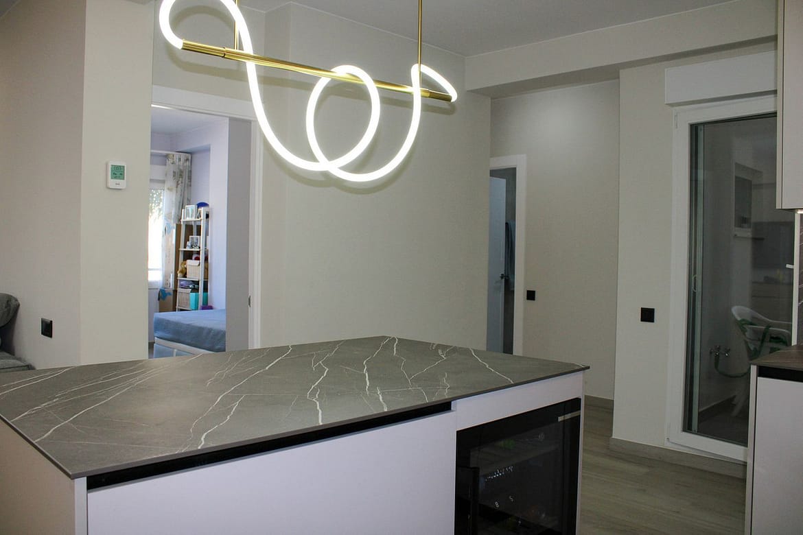 Newly renovated large bright apartment with two bedrooms, one bathroom and glazed balcony in the center of Vélez-Málaga, furnished with tasteful design and high-quality product selection.